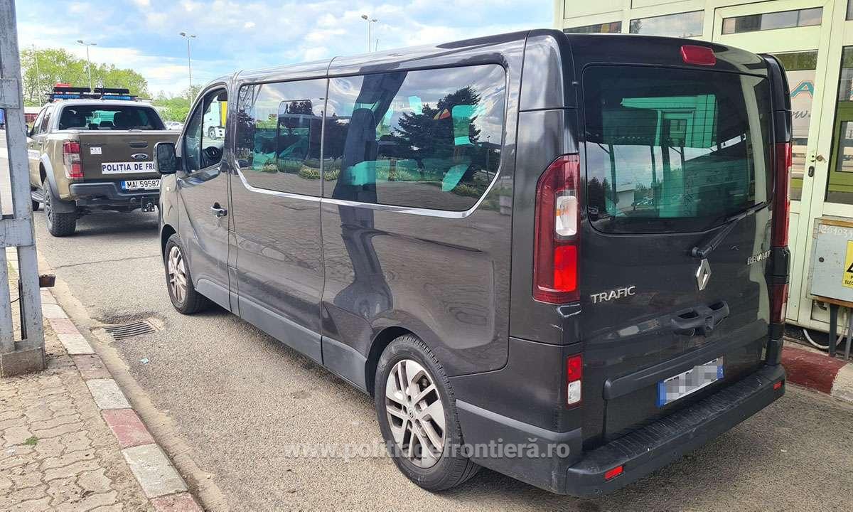 În data de 09 mai a.c., în jurul orei 15.30, în Punctul de Trecere a Frontierei Petea, județul Satu Mare, s-a prezentat pentru efectuarea formalităților de frontieră, pe sensul de intrare în ţară, un bărbat în vârstă de 42 de ani, din județul Maramureș. Acesta conducea un autovehicul marca Renault Trafic, pe care erau aplicate plăcuțe cu numere de înmatriculare specifice Franței.
