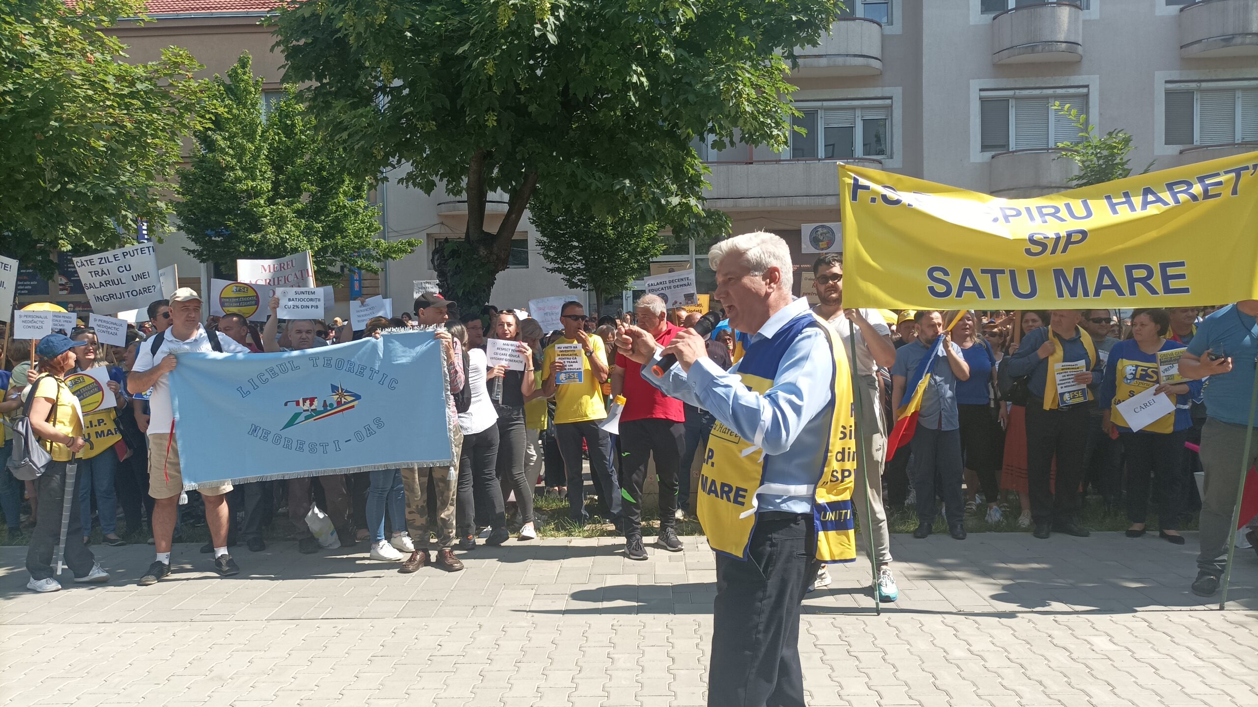 Sute de profesori au protestat în data de 30 mai, începând cu orele 11 și până la ora 13, în fața Instituției Prefectului din Satu mare.