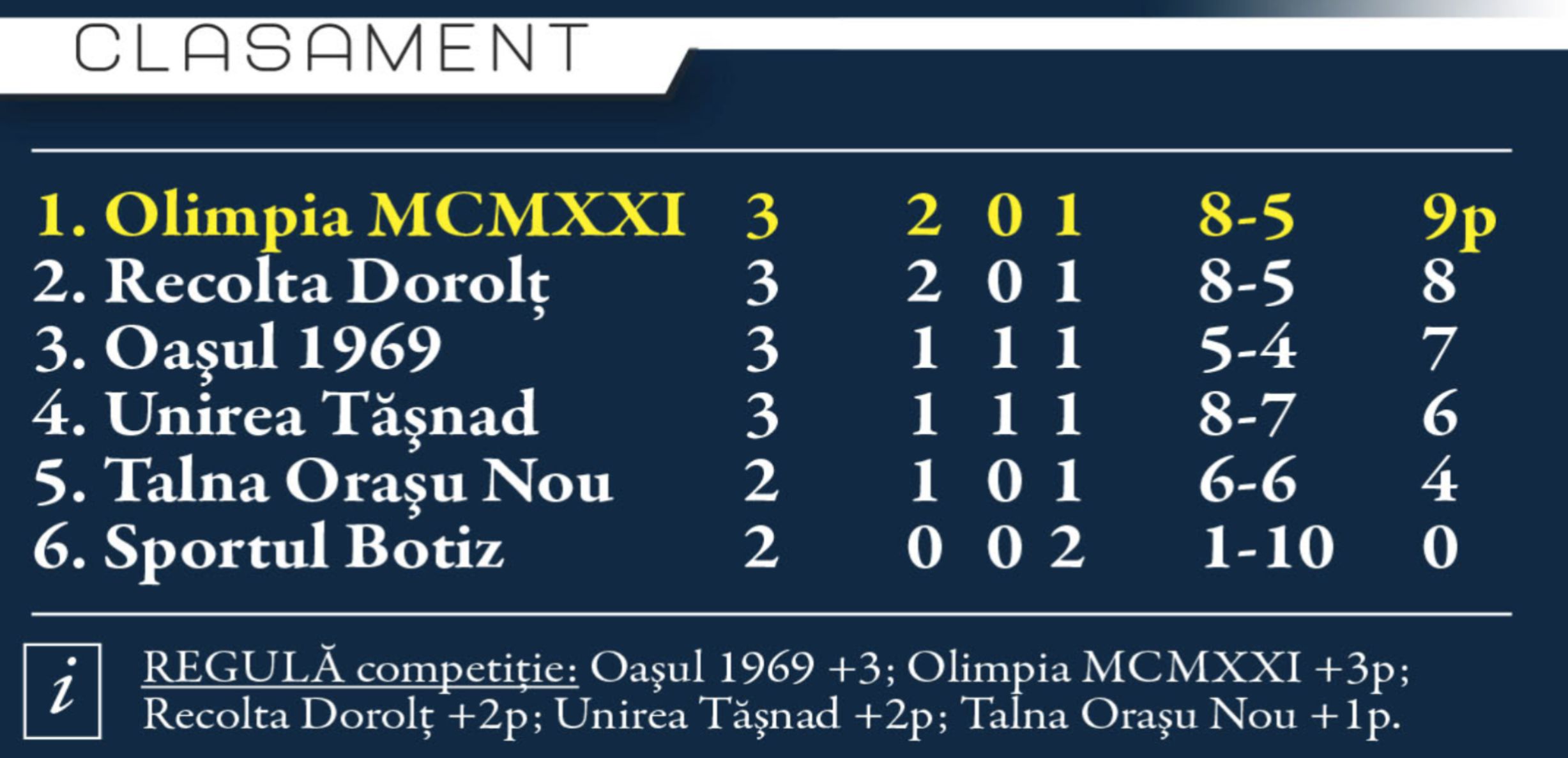Olimpia caută să-și revină după eșecul de sâmbătă și e favorită în duelul de la Botiz în vreme ce la Dorolț avem duelul antrenorilor-jucători, ambii fundași, Cosmin Iuhas și Marius Bălău.