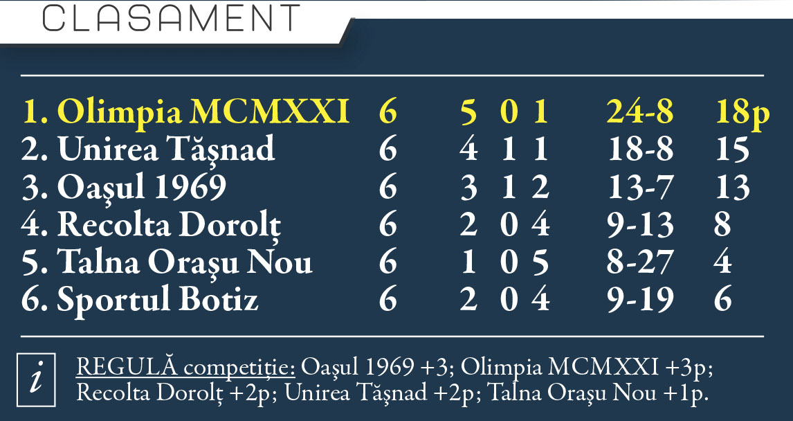 Unirea are doar varianta victoriei pentru a-i egala la puncte pe galben-albaștri și pentru a mai spera apoi ca sătmărenii să se mai încurce încă o dată...În schimb , Olimpia lui Cristi Popa , cu o victorie la Tășnad și-ar asigura în mare măsură prezența la baraj.