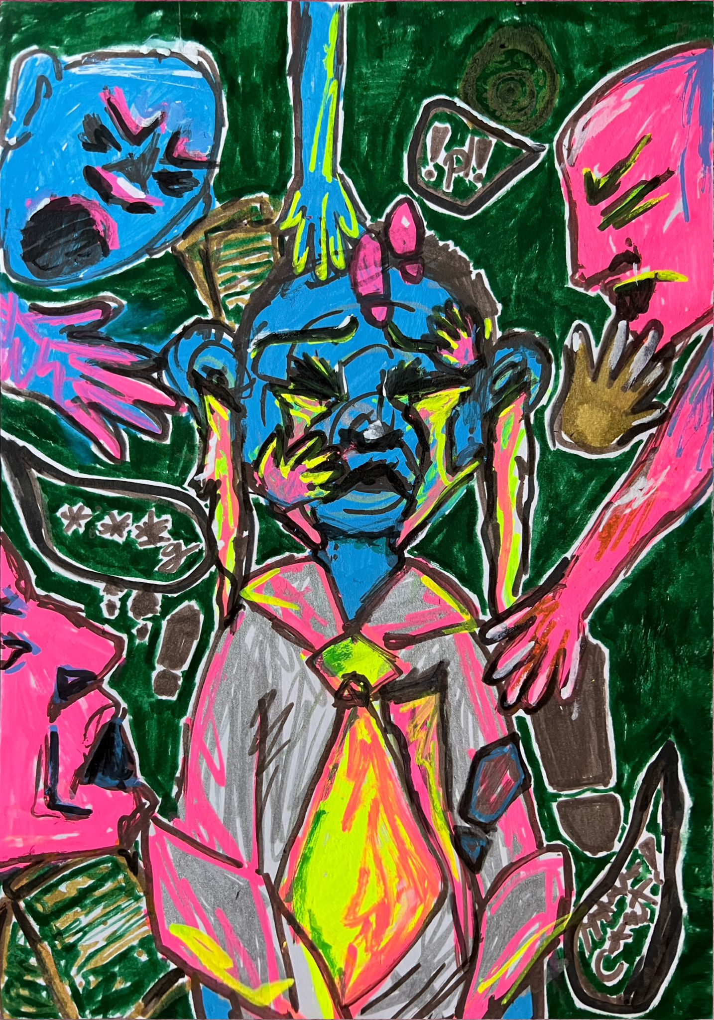 (Titlul lucrării ,,Nu vă lăsați profesorii să fie călcați în picioare!,, - desen pe foaie A4 realizat în markere cu vopsea. Maria Tămaș - clasa a VII a B - elevă la Școala Gimnazială ,,Mircea Eliade,, - Satu Mare)