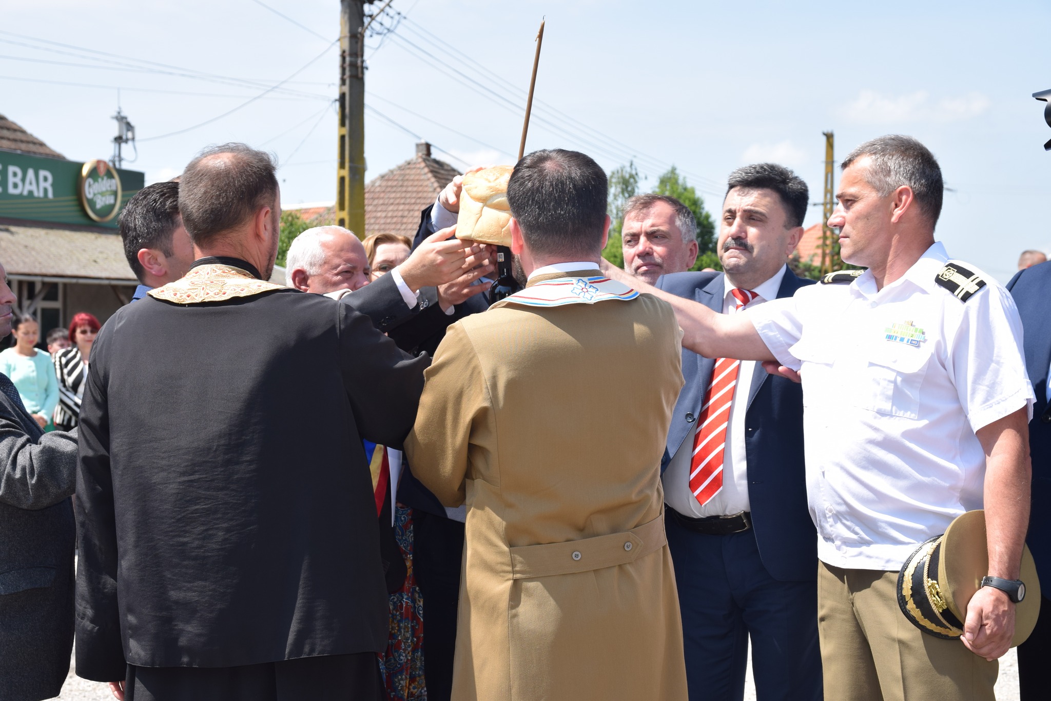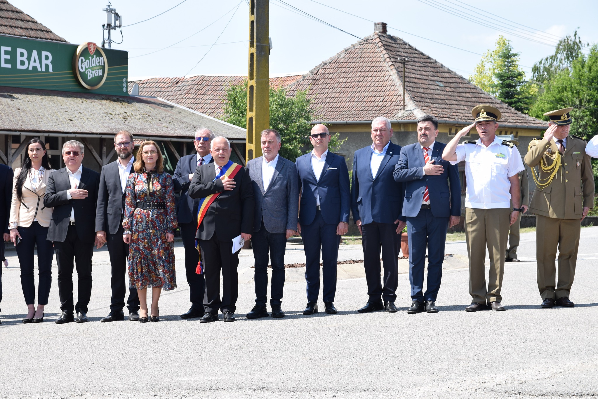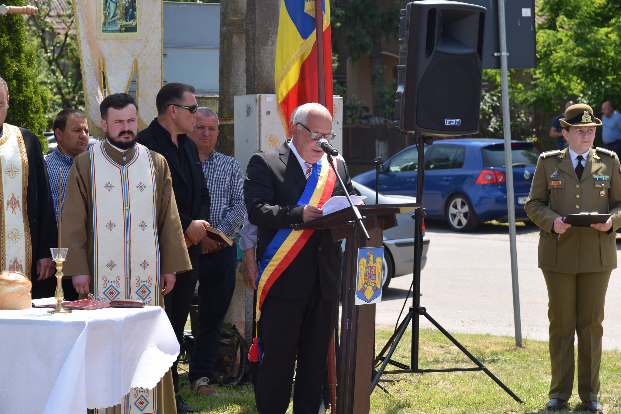 Programul manifestărilor de astăzi a început cu primirea persoanei oficiale-prefectul județului Satu Mare, Radu Roca, salutul gărzii de onoare, intonarea imnului de stat a României, alocuțiuni susținute de prefect, de primarul comunei Moftin, Gheorghe David și de comandantul Garnizoanei Satu Mare, lt.col.Gheorghe Balazs.