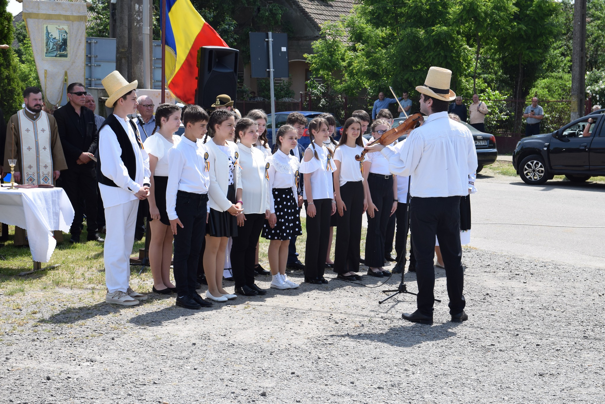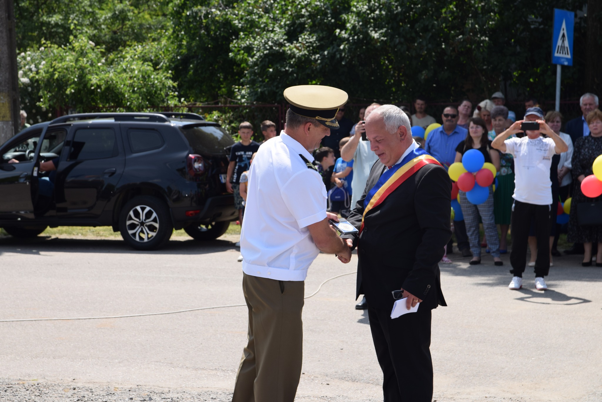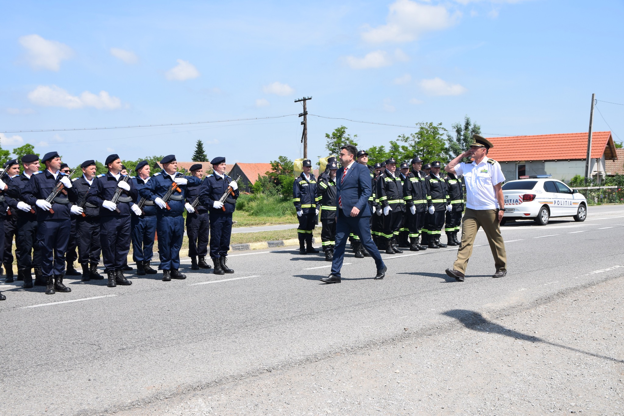 Programul manifestărilor de astăzi a început cu primirea persoanei oficiale-prefectul județului Satu Mare, Radu Roca, salutul gărzii de onoare, intonarea imnului de stat a României, alocuțiuni susținute de prefect, de primarul comunei Moftin, Gheorghe David și de comandantul Garnizoanei Satu Mare, lt.col.Gheorghe Balazs.
