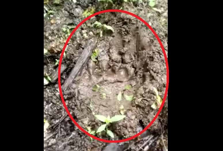 Tot pe facebook a fost postat și un filmuleț făcut în pădure în care aparae ceea ce pare a fi o urmă lăsată de urs pe un teren moale.