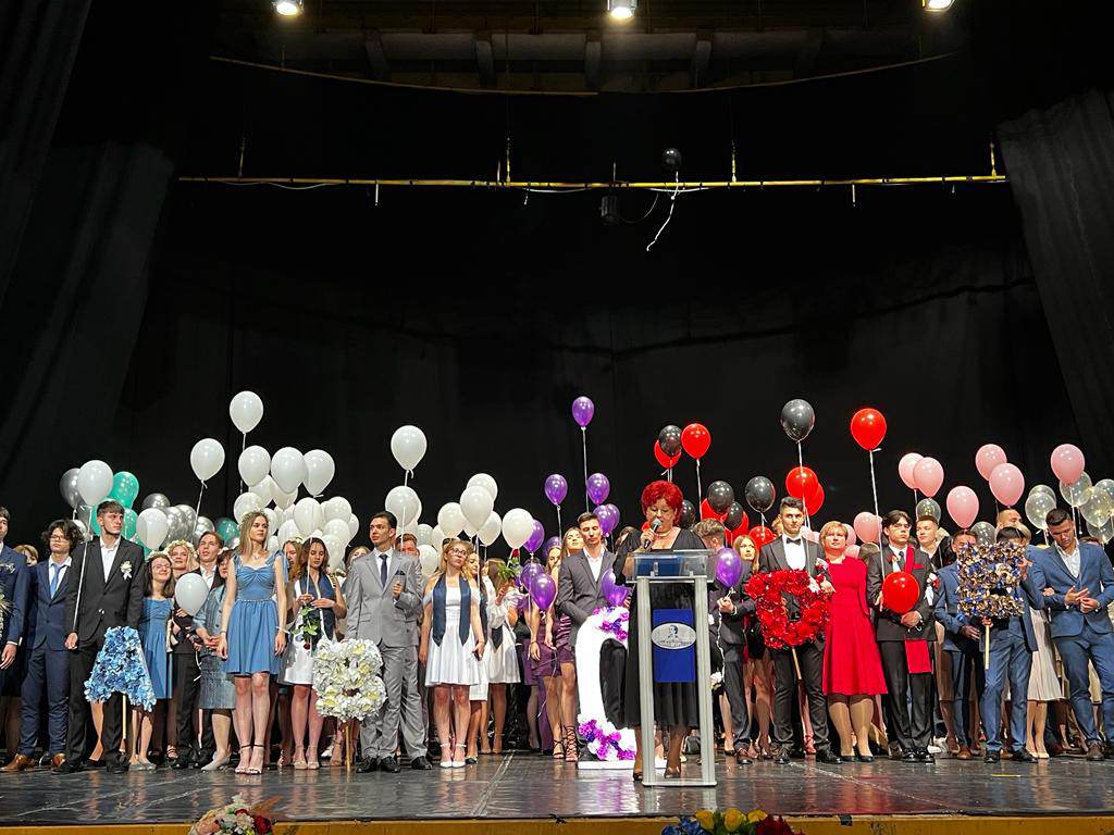 „Colegiul Național „Mihai Eminescu” este astăzi topos al emoțiilor, al retrospectivelor, al excelenței în educație. La nivel simbolic, luna iunie devine inevitabil un sinonim al ideii de educație și de sfârșit, vorbim despre un ceremonial tradițional încărcat de emoții și speranțe pentru că ne-am regăsit împreună aici, elevi, profesori, părinți, pentru că încercăm să definim idealuri, să realizăm trecutul și să ne proiectăm viitorul. Școala înseamnă în egală măsură cunoaștere, știință, cultură, dar și morală, spiritualătate și dragoste. Condensăm astăzi clipe de emoție, reflecții și inevitabile melancolii la final de colegiu eminescian, clipe trăite profund de-o potrivă de absolvenți, profesori și diriginți, precum și de părinții și bunicii absolvenților. Pătrundem treptat în templul rememorărilor, am parcurs întâmplări, lecții simbolice, bucuria învățării și a competițiilor, palmaresul premiilor, vorbim aici despre studiu, cărți și ambiție, toate le pătrundem acum și le prindem într-un mozaic de cuvinte, evocăm fotografii sugestive cu suișuri și coborășuri, iar discursurile și perspectivele se împletesc în tonalități sobre, în țesătura fină a unor analize lucide, a unor metafore subtile”, a precizat Natalia Boloș, directoarea Colegiului Național „Mihai Eminescu”, în cadrul festivității de absolvire, care a avut loc vineri, 16 iunie 2023.
