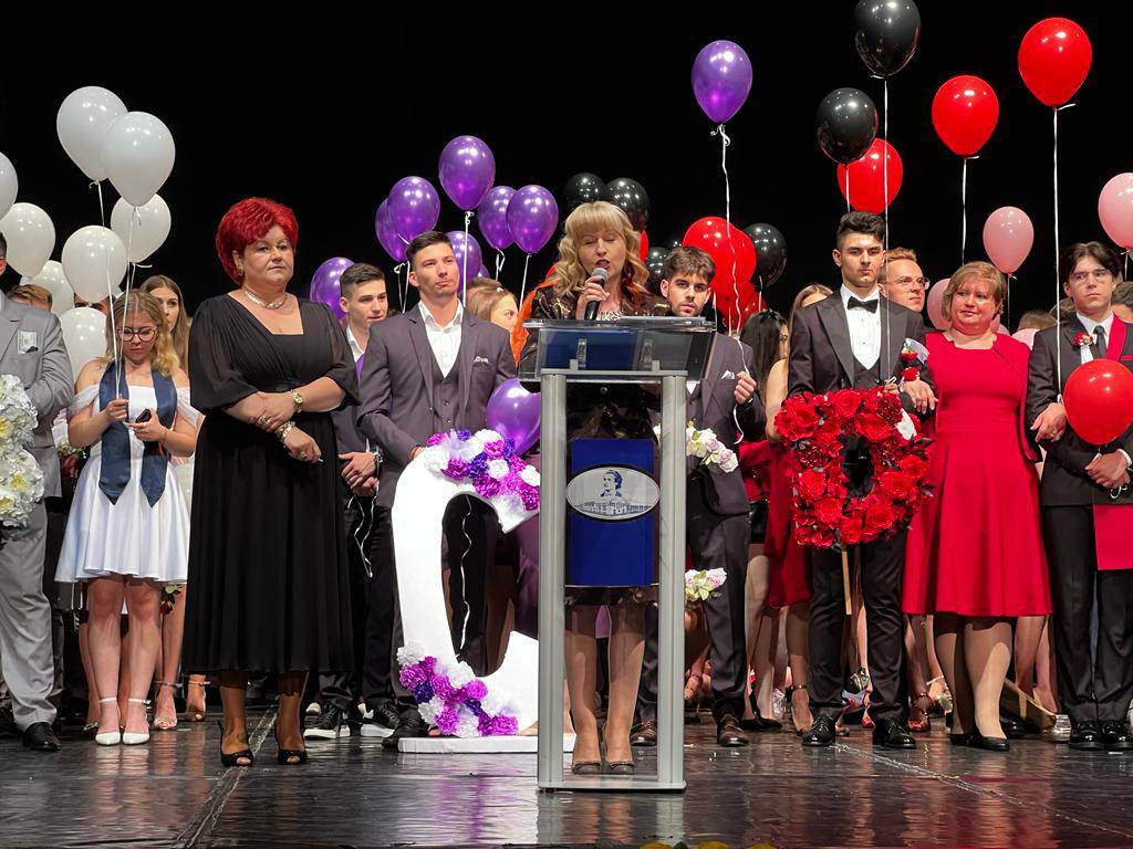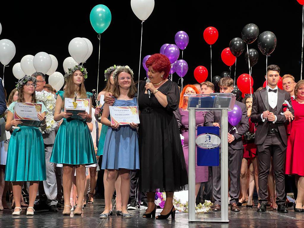 „Este o ocazie specială în care privim retrospectiv spre parcursul vostru de-a lungul anilor de școală și vă felicităm pentru eforturile depuse și pentru reușitele pe care le-ați obținut. Dorim să subliniem importanță exameneor naționale, dar și să reflectăm asupra copilăriei, reușitei, implicării părinților și dedicării profesorilor, însă, pe lângă importanța examenelor. vă încurajez să vă amitiți de copilăria voastră, de perioada înc are ați descoperit lumea și visurile voastre ce vă erau la îndemână. Copilăria este un timp al curiozității și al explorării în care ați învățat să vă dezvoltați abilitățile, pasiunile și demnitatea voastră. Nu uitați să păstrați această curiozitate și deschidere spre învățare pe măsură ce mergeți mai departe în viață. Nu putem ignora nici reușitele pe care le-ați obținut, fie că ați obținut note excelente la examene, ați câștigat competiții sau ați excelat în domeniile artistice sau sportive, fiecare reușită este un motiv de mândrie și de aplauze. Continuați să vă stabiliți obiective ambițioase și să luptați epntru ele, având încredere în propriile voastre abilități”, a spus Anișoara Boitor, inspector general școlar în cadrul Inspectoratului Școlar din Satu Mare.