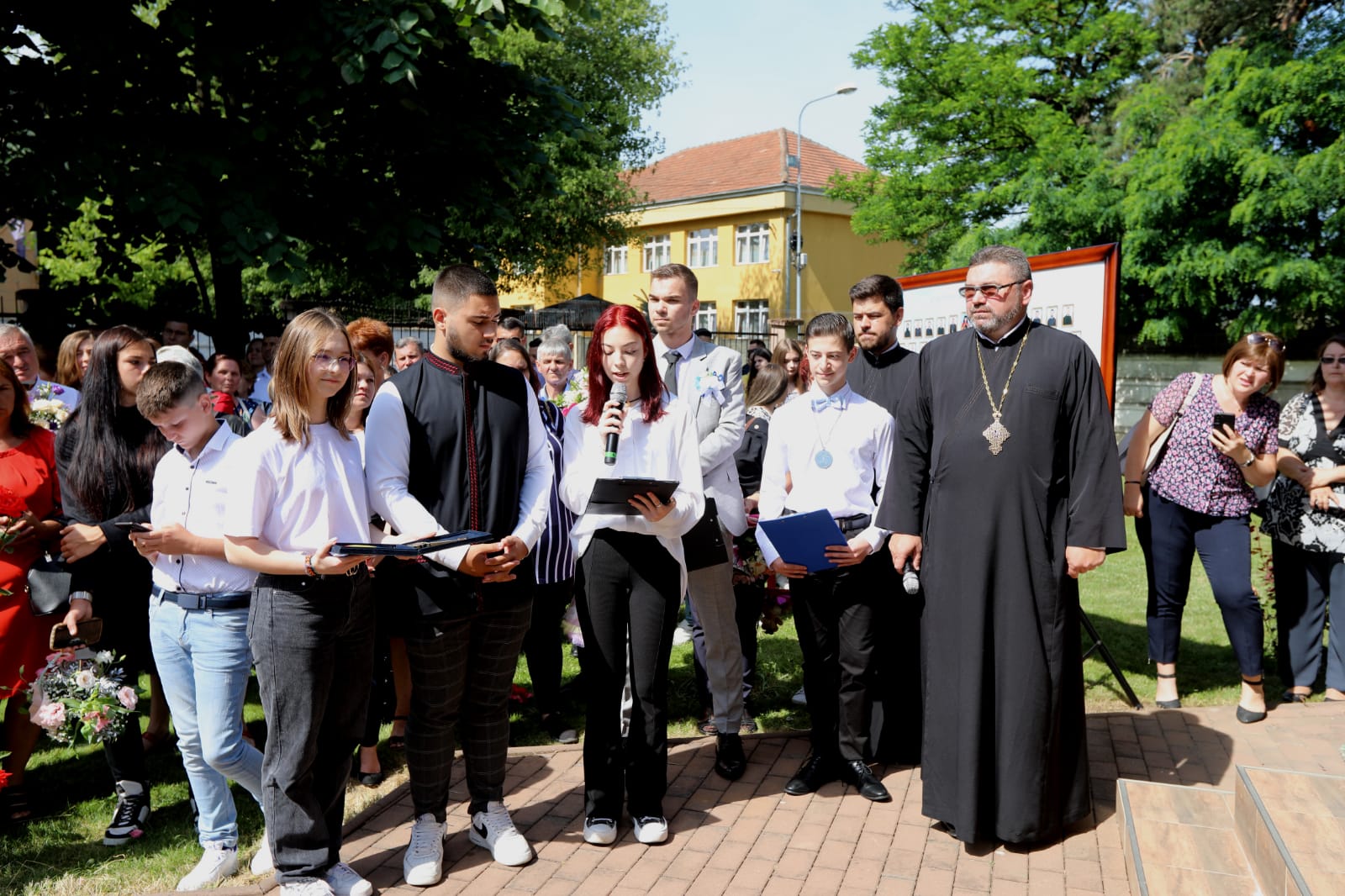 Directorul unității școlare, pr. Gabriel Groza, a prezentat cei 90 de absolvenți, 30 de clasa a VIII-a și 60 de clasa a XII-a, după care a avut loc festivitatea de premiere a celor mai buni elevi pe fiecare clasă, precum și a elevilor care au obținut performanțe la olimpiadele școlare.