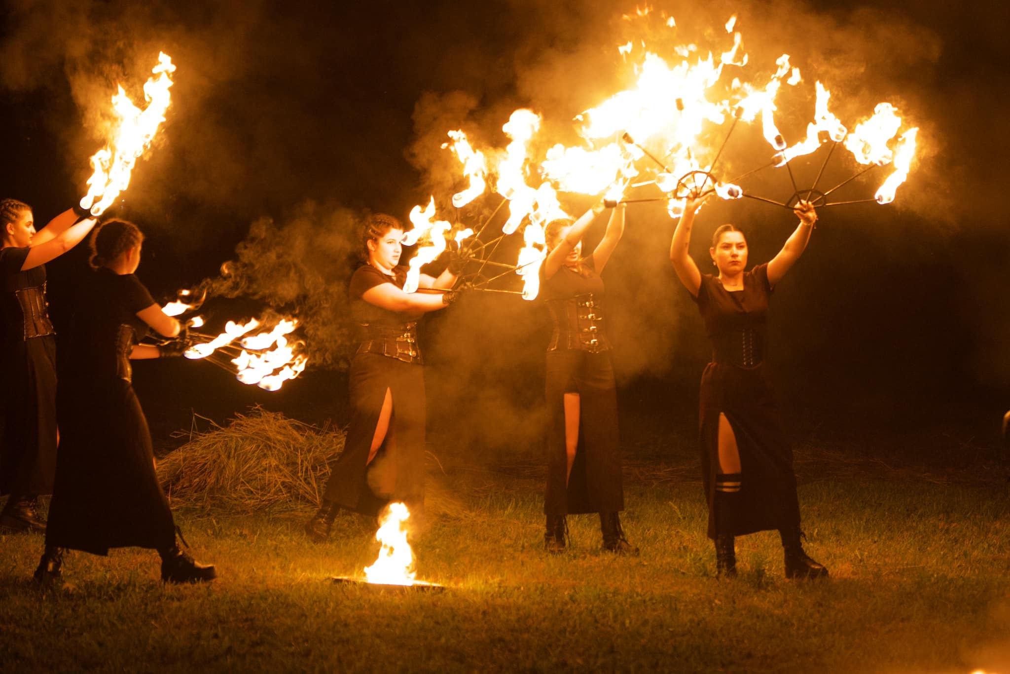 Torțele în flăcări, evantaiele cu foc, lanțurile cu fire poi, săbiile și uimitoarele momente de “fire spit” (sufla foc) au făcut din acest program artistic unul extrem de complex și fascinant în același timp.