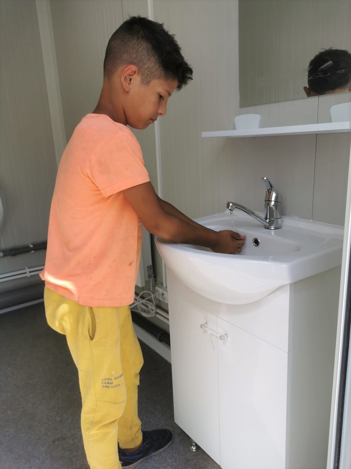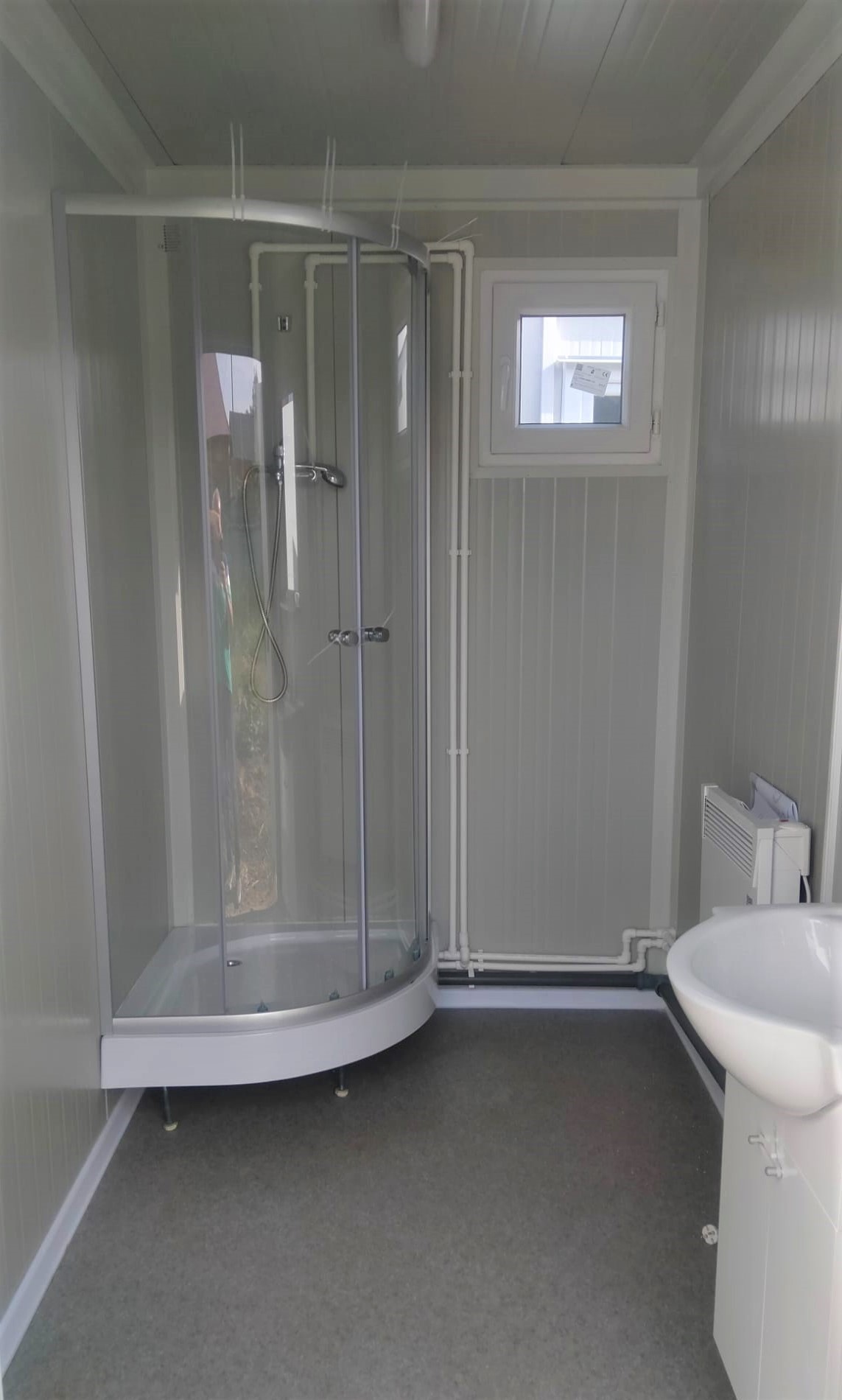 Containerele sanitare, unul pentru bărbați și unul pentru femei, sunt complet dotate cu dușuri, chiuvete, toalete, mașini de spălat și uscător de rufe.