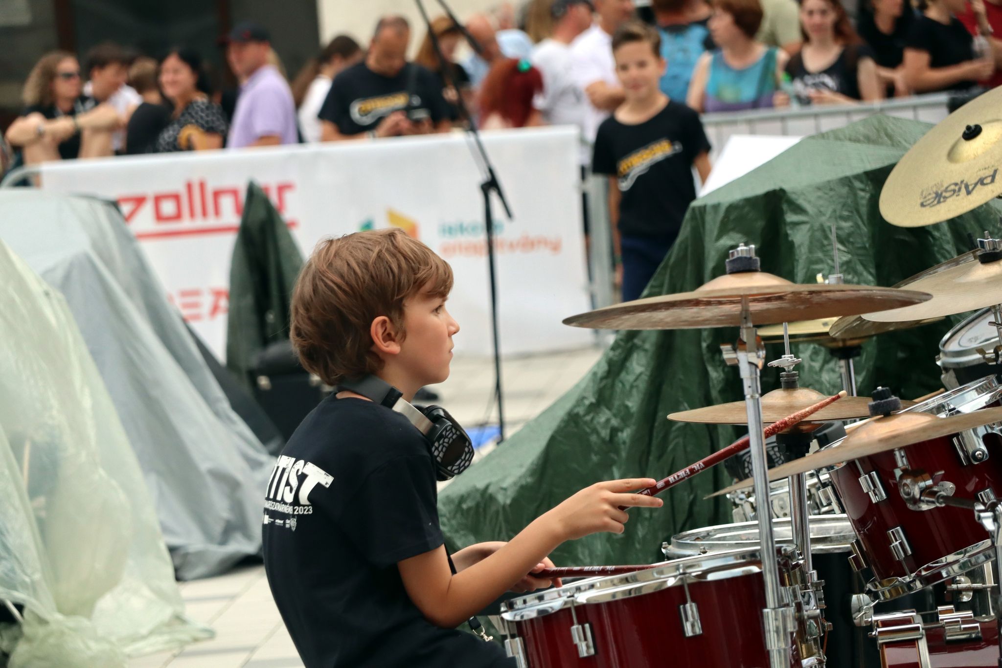 Când la un moment dat s-a eliberat locul de la tobe, puștiul a țâșnit de lângă părinții lui și după o scurtă verificare a instrumentelor a început un solo de tobe care a aruncat efectiv audiența în aer. Scena era doar a lui și se putea distinge cât de multă pasiune pune în tot ceea ce face.