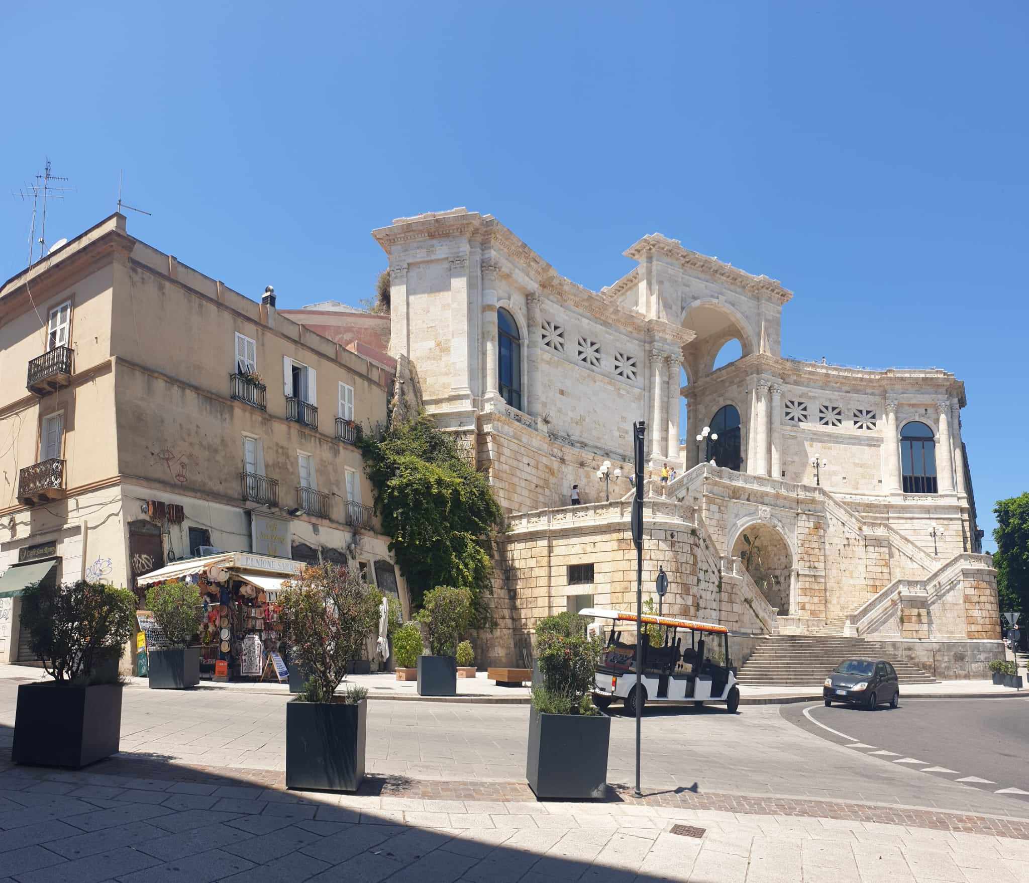 Începeți turul dvs. de la Cagliari urcând treptele de marmură Passeggiata Coperta (sau luarea ascensorului gratuit) de la Piazza della Costituzione la Bastione San Remy.