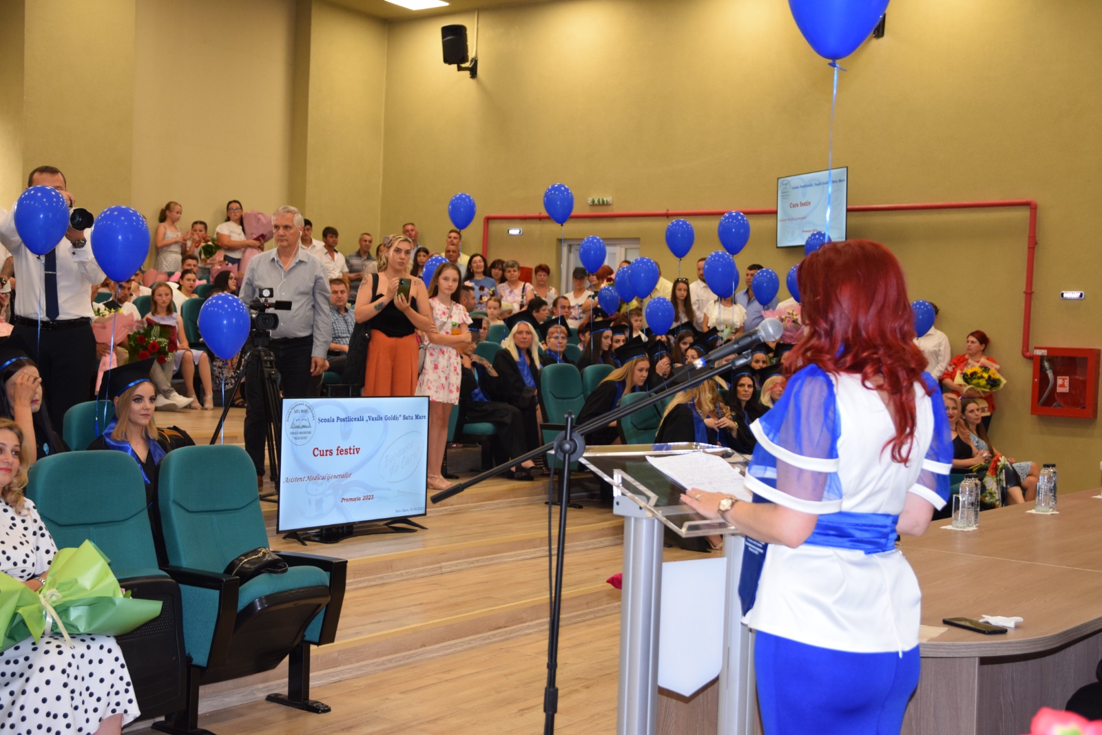 „Astăzi sărbătorim absolvirea cursurilor postliceale a promoției 2020-2023 și ne mândrim cu faptul că de-a lungul anilor, mulți dintre absolvenții școlii noastre au fost absolviți de sistemul sanitar de stat sau privat ”, Pastor Diana, dirigintele absolvenților promoției 2023