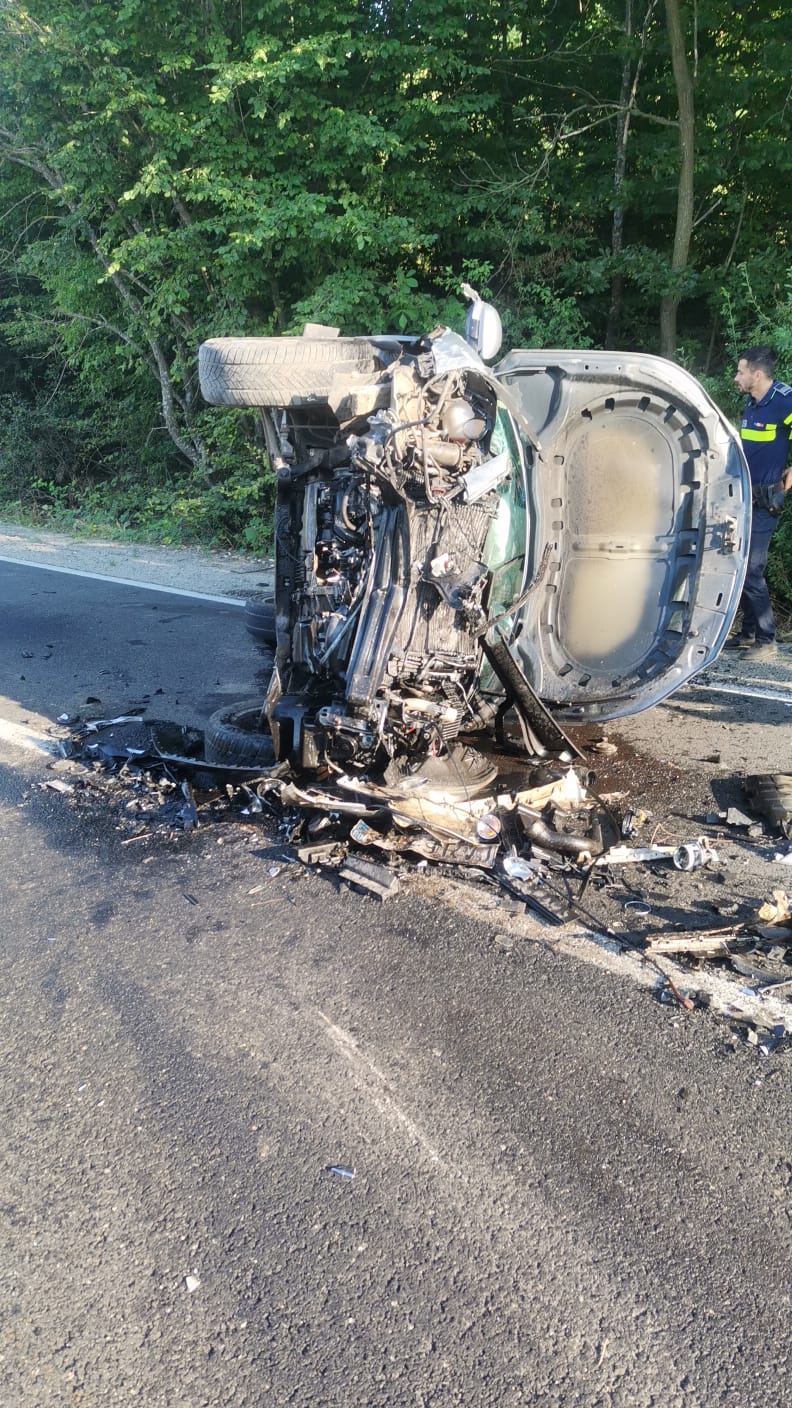 În urma impactului, autoturismul condus de femeie s-a răsturnat pe partea carosabilă, cel de-al doilea vehicul fiind proiectat în șanțul din partea stângă a direcției de deplasare.