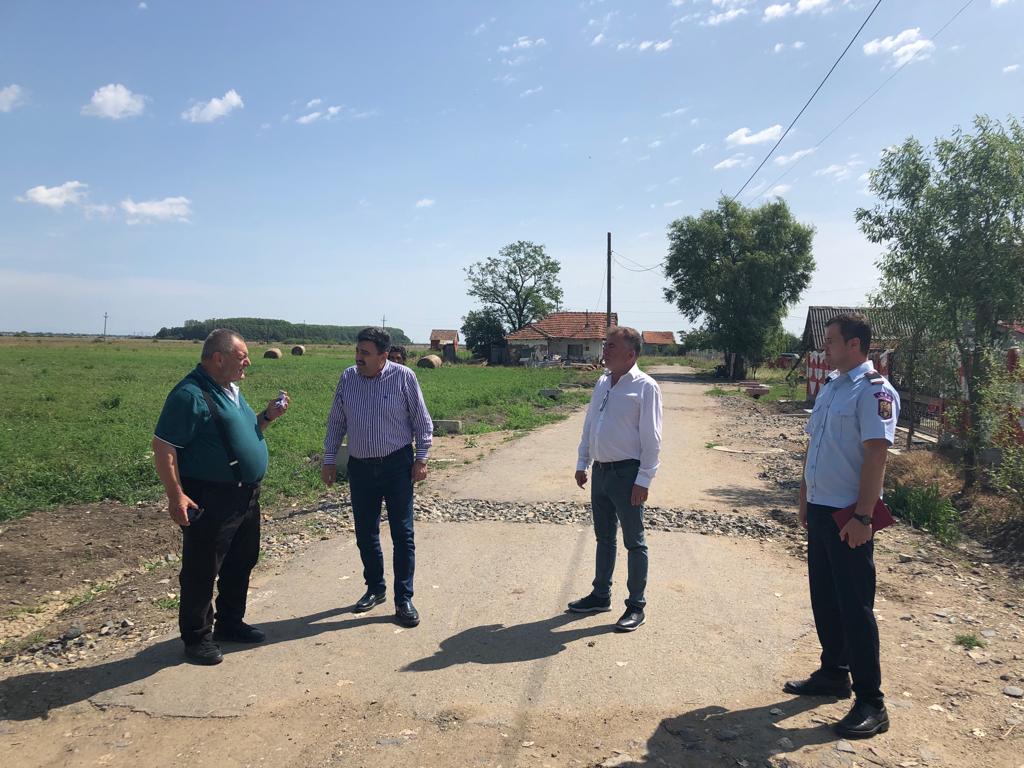 Prefectul Radu Roca alături de directorul Cancelariei, Radu Iancu, a însoțit astăzi în activitatea pe teren echipele de evaluare constituite în baza Ordinului prefectului 235/2023 (comisia mixtă de constatare a pagubelor în agricultură ca urmare a unor fenomene meteo nefavorabile) și a Ordinului prefectului 175/2023 (comisia mixtă județeană de evaluare a situațiilor de urgență produse urmare a fenomenelor hidrometeorologice periculoase), deplasate pe raza comunei Doba, urmare a notificării primite din partea unității administrativ-teritoriale în cursul zilei de ieri, 24 iulie 2023.