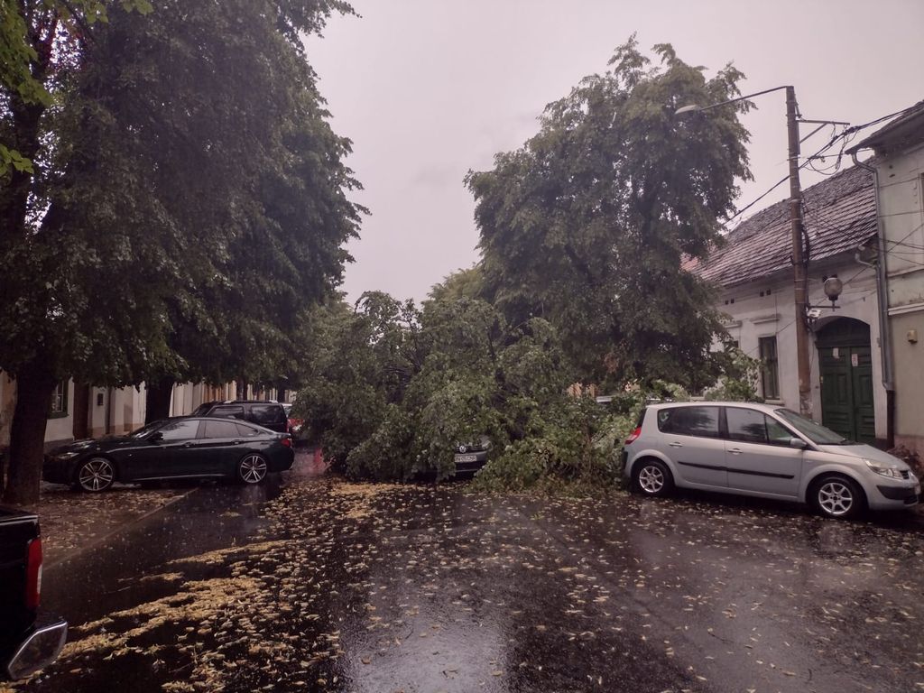 „În urma fenomenelor meteo, pompierii din cadrul Punctului de lucru Tășnad au intervenit la degajarea a trei copaci, dintre care unul răsturnat peste acoperisul unei case iar doi pe partea carosabilă”, arată o informare a ISU satu Mare.