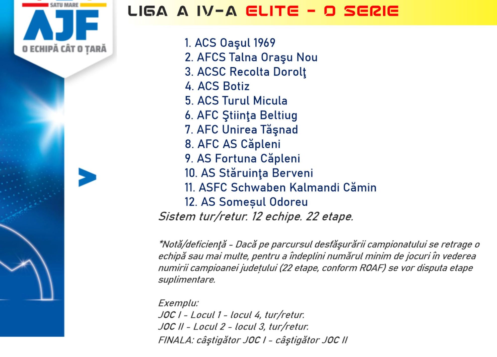 La nivel de Liga a 4-a elite a fost votat sistemul cu o serie de 12 echipe și un campionat cu 22 de etape...Echipele au înțeles că e nevoie de CIS-uri pentru a participa la barajul de promovare așa că la nivel de elite actele par a fi rezolvate de echipele înscrise. Crasna Moftin a promovat în elite dar din motive ce țin de bucătăria proprie echipa a cedat locul celor de la Someșul Odoreu. Iar Crasna va rămâne în liga a 4-a. Se va achita și o garanție de 2000 de lei de fiecare echipă din elite pentru a evita oarecum retragerile din campionat.Așa cum s-a întâmplat în iarnă cu Unirea Păulești, Viitorul Vetiș și Luceafărul Decebal. La nivel de Liga a 4-a echipele trebuie să aibe și trupe de juniori!