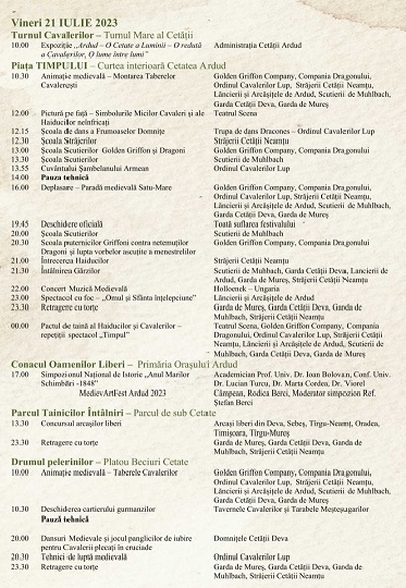 Ca și concept fundamental al vieții, sub semnul TIMPULUI va sta ediția a XI –a a FESTIVALULUI MEDIEVAL MedievArtFest Ardud 2023 care se va desfășura în perioada 21-23 iulie 2023 la Cetatea ARDUD.