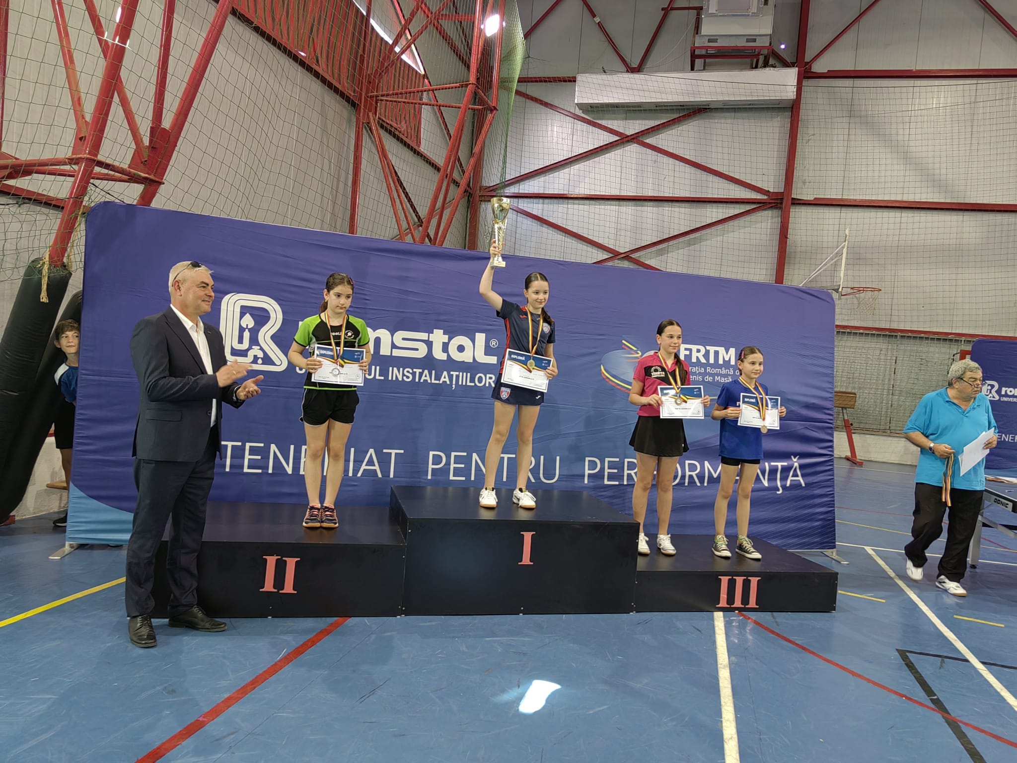 U11 fete: 1.Teodora Sardeni (Moineşti), 2.Regina Tyukodi (Carei), 3.Dorotya Czako (Carei), 3.Anna Şuta (Carei).