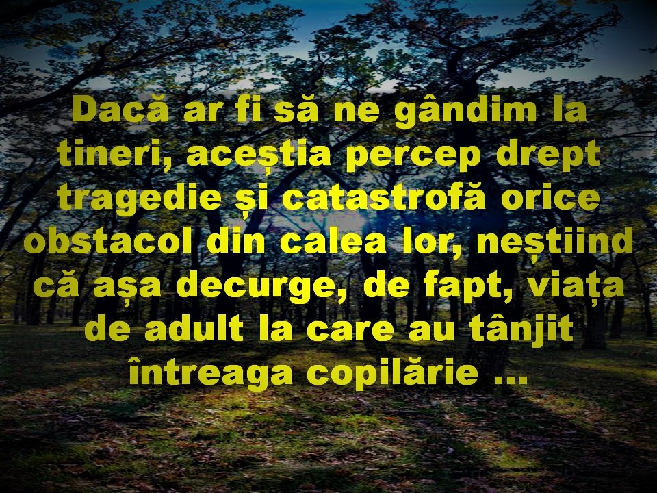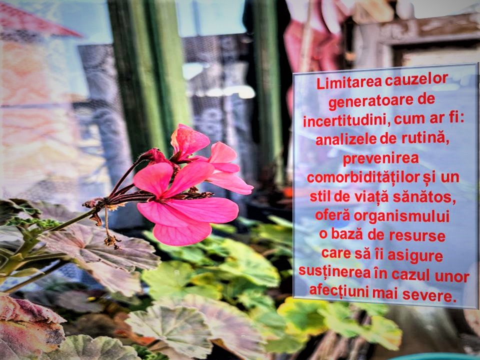Așadar, tot noi suntem cei care inconștienți, ne-am înfundat în acest necunoscut prin indiferență, superficialitate, monotonie, haos și un management precar al timpului si al priorităților. Este adevărat că nu ne naștem nici învățați, nici experimentați, nici curajoși, dar cu fiecare obstacol trecut cu brio, cu fiecare mic pas făcut înainte, cu fiecare moment îndrăzneț în care acționăm fără să ne gândim prea mult la consecințe și cu fiecare moment în care ne deschidem cu adevărat, îngustăm tot mai mult perimetrul acestui “necunoscut” al nostru. La fel se întâmplă în cazul copiilor care învață să se dea cu bicicleta ... mai întâi apare entuziasmul dat de încercarea unei noi activități, apoi apare teama, neștiind ce se va întâmpla când vor fi înlăturate roțile de sprijin, apoi poate să intervină eșecul, care în majoritatea cazurilor reprezintă o mică lovitură, dar categoric și un pas înainte. După experiența acumulată în ceea ce privește echilibrul, pornirile, opririle și căzăturile, copilul deține toate cunoștințele astfel încât mersul cu bicicleta să fie transformat din teamă și provocare în plăcere și abilitate. Sunt conștient că exemplul cu bicicleta categoric nu se aplică și în cazul celor bolnavi și, bineînțeles că îngustarea sferei necunoscutului în ceea ce privește sănătatea nu poate să însemne experimentarea tuturor patologiilor.