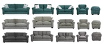 Gama de canapele din poliester în culori verzi, teal și roz, cu perne