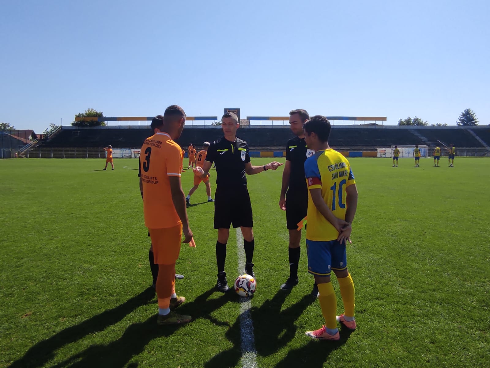 Sătmărenii au dominat partida și au condus până la pauză prin reușita lui Viorel Chinde din minutul 34. Acesta a șutat de la marginea careului iar portarul oaspeților, neatent, a scăpat mingea în plasă.