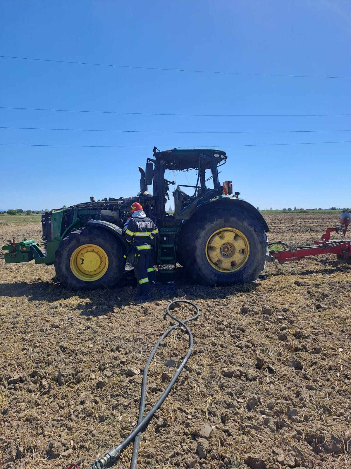 Astăzi, 14.08.2023, în jurul orei 14:30 Inspectoratul pentru Situații de Urgență "Someș" al județului Satu Mare, a fost alertat să intervină la stingerea unui incendiu produs la un utilaj agricol (tractor) în localitatea Lazuri. La locul intervenției s-au deplasat 10 subofițeri din cadrul Detașamentului de Pompieri Satu Mare, cu două autospeciale de stingere cu apă și spumă. Pompierii militari au limitat și lichidat incendiul la nivelul blocului motor și al cabinei, înaintea propagării acestuia la întreg utilajul agricol. Cauza probabilă a izbucnirii incendiului fiind efectul termic.
