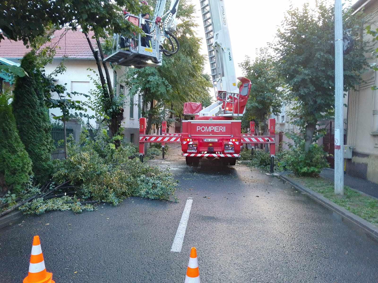 În contextul fenomenelor meteorologice avertizate, până la această oră, pompierii militari sătmăreni au fost solicitați să intervină pentru degajarea a șase copaci căzuți în municipiul Satu Mare, care au avariat trei autoturisme și au blocat circulația pe mai multe străzi din oraș.