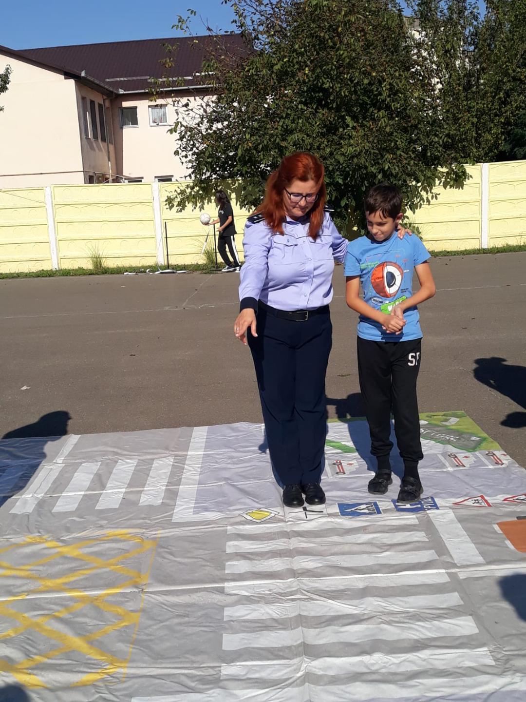 Cu elevii din ciclul primar, polițiștii au dezbătut tema axată pe siguranța rutieră, pornindu-se de la premisa că alături de familie și de cadrele didactice și reprezentanții Poliției Române își doresc și contribuie la siguranța celor mici atât în mediul școlar, în societate, acasă cât și ca participanți ai traficului rutier. Copiilor le-au fost transmise informații privind: drepturile și obligațiile ce ne revin în calitate de pietoni, modul în care trebuie să ne comportăm pe stradă, cum traversăm, care sunt regulile de circulație dar și regulile pe care trebuie să le respectăm atunci când ne jucăm în spații special amenajate sau atunci când ne facem noi prieteni.