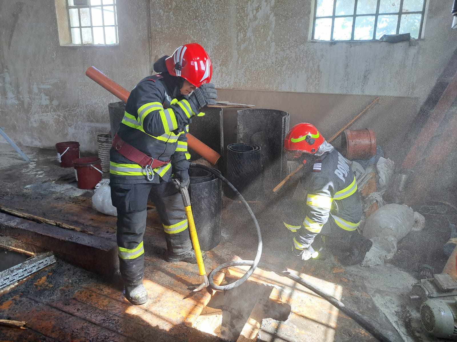 Echipajele prezente au procedat la localizarea și lichidarea incendiului în timp operativ, limitând astfel pericolul de propagare a flăcărilor la întreaga hală și la utilajele mecanice prezente. În aceste momente pompierii acționează pentru identificarea posibilelor focare ascunse și îndepărtarea efectelor negative ale incendiului.