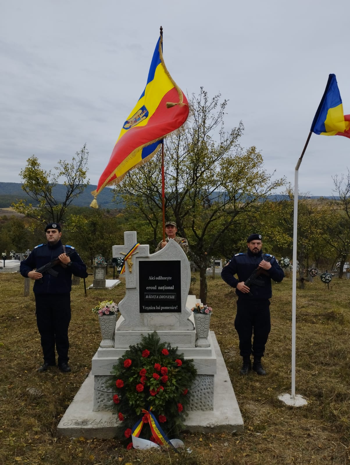 Manifestările au debutat la mormântul comun de război aflat în satul Stâna, cel care a fost identificat de curând de autoritățile locale și amenajat cu puțin înainte de manifestările de joi.