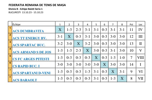 Trei victorii din cinci partide a obținut echipa ACS ARMAND SUPUR la primul turneu al Campionatului Național, Divizia B, la tenis de masă.