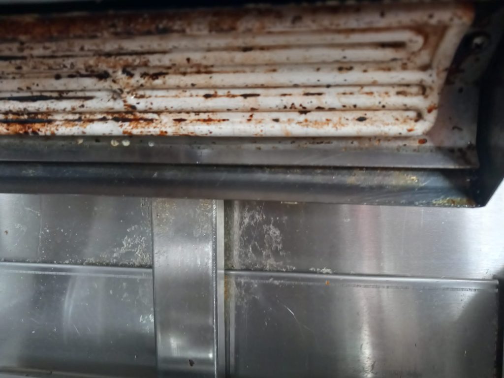 • folosirea unor vitrine frigorifice neigienizate, cu praf în exces, rugină, chedere rupte și corpuri străine;