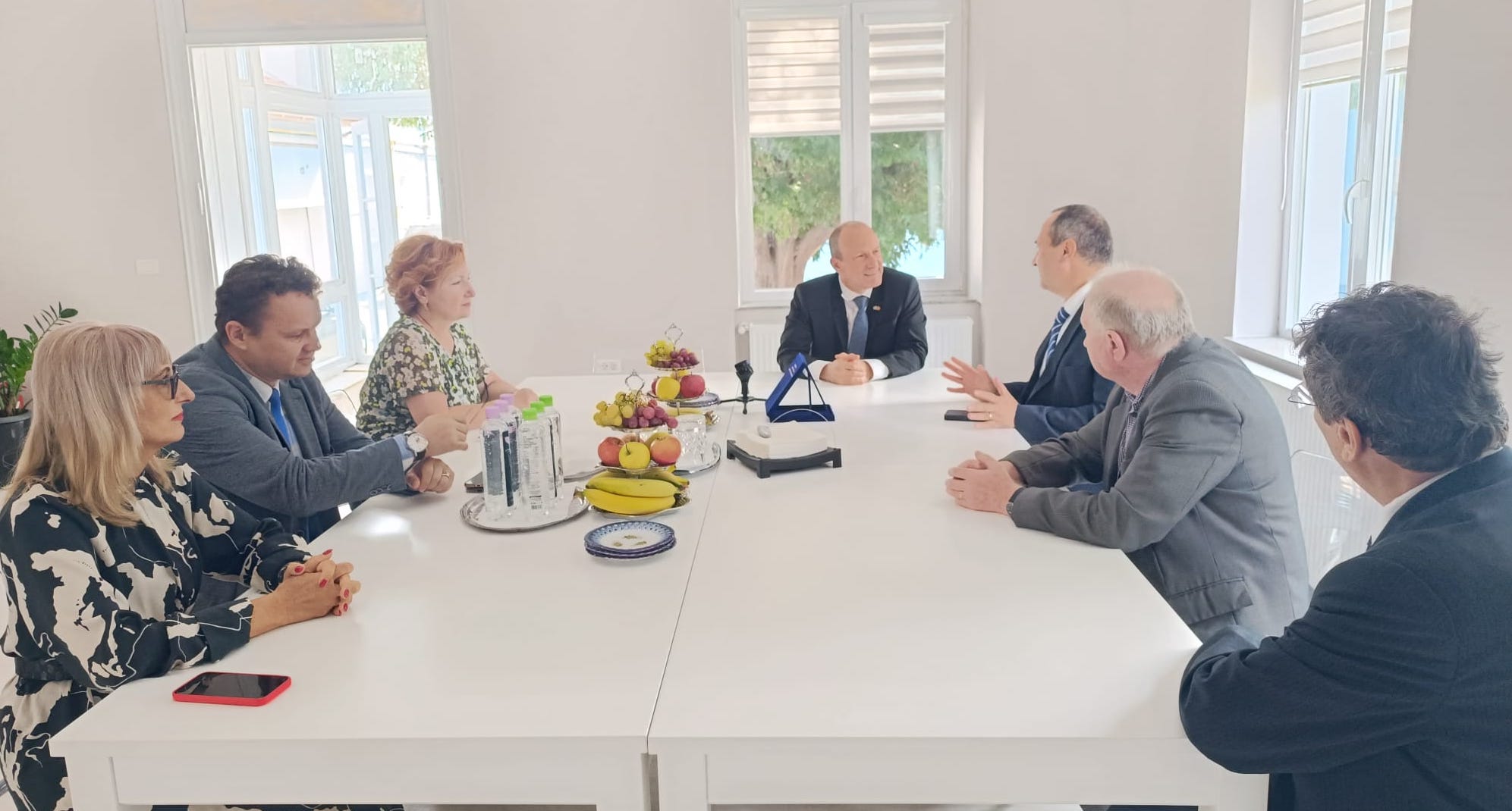 Prima oprire a E.S. a fost la Primăria Municipiului Arad, unde a avut o întrevedere cu primarul Aradului, Călin Bibarț, principalele teme de discuție fiind legate de posibilitățile de colaborare între orașul nostru și comunitățile din Israel, în special cooperarea economică, dar și cea culturală.