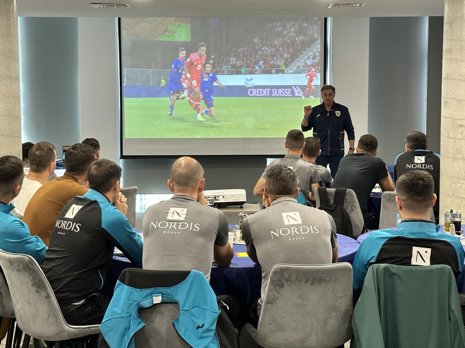 De la seminar au lipsit Istvan Kovacs și Marcel Bîrsan împreună cu colegii lor din brigăzile care au condus marți, 17 octombrie, două partide internaționale în preliminariile EURO 2024, respectiv în cele pentru Campionatul European U21.