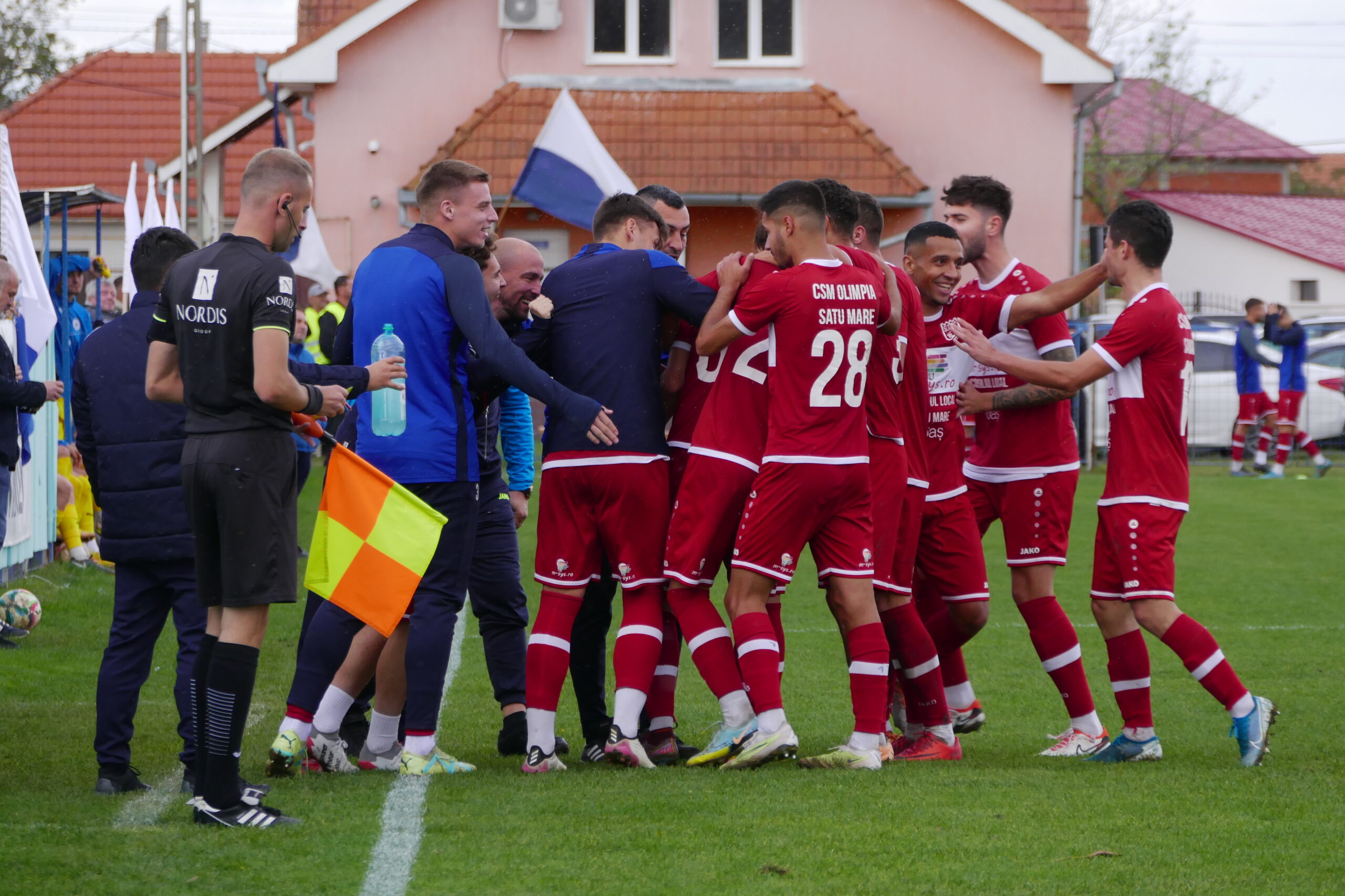 Sătmărenii au replicat în minutul 14 când Zsiga a centrat din lovitură liberă și Samake a reluat cu capul puțin peste transversală din 7 metri, poziție centrală. Tot Hora a avut ocazia să dubleze avantajul în minutul 35, când Berbeacă a ieșit aiurea, dar atacantul s-a pripit și a șutat de la marginea careului din prima, cu exteriorul, dar șutul său a trecut pe lângă.