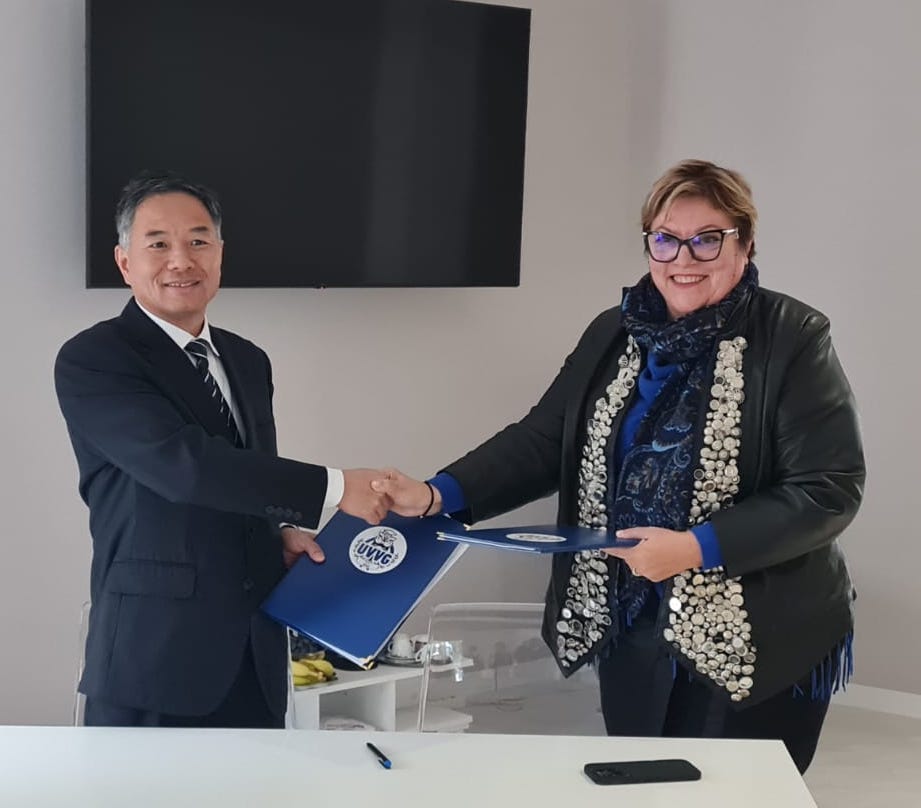 Următorul obiectiv vizitat de membrii delegației a fost Departamentul de Relații Internaționale din cadrul UVVG, a fost semnat și acordul Erasmus+ dintre cele două instituții de învățământ superior, pentru susținerea mobilităților de cadre didactice și studenți.