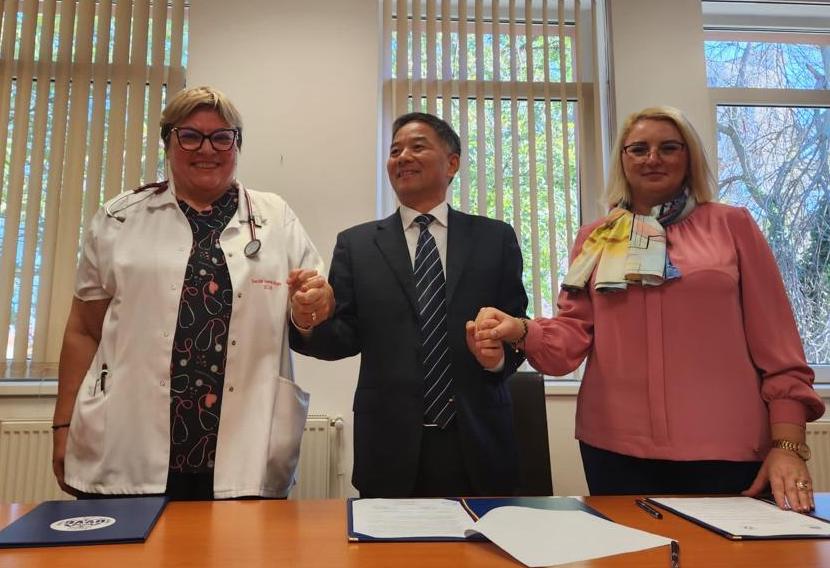 O altă etapă importantă a vizitei a fost întâlnirea cu conducerea Spitalului Clinic Județean de Urgență Arad, unde delegația a fost primită de directorul spitalului, doamna Florina Ionescu și șefii de secții. Vizita în secțiile clinice a reprezentat o oportunitate de a înțelege mai bine infrastructura și capacitățile medicale ale spitalului, consolidând astfel dialogul pentru potențiale colaborări în domeniul medical și academic. Cu această ocazie a fost semnat și un acord de cooperare între Universitatea de Vest „Vasile Goldiș” din Arad, Spitalului Clinic Județean de Urgență Arad și Hangzhou Medical College din China.