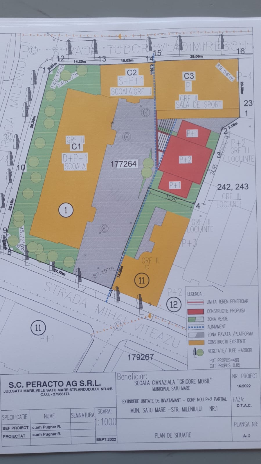 Proiectul care are în vedere extinderea Scolii Gimnaziale ”Grigore Moisil” cu încă șase săli de clasă a fost demarat de conducerea școlii în colaborare cu Primăria Satu Mare încă din 2020.