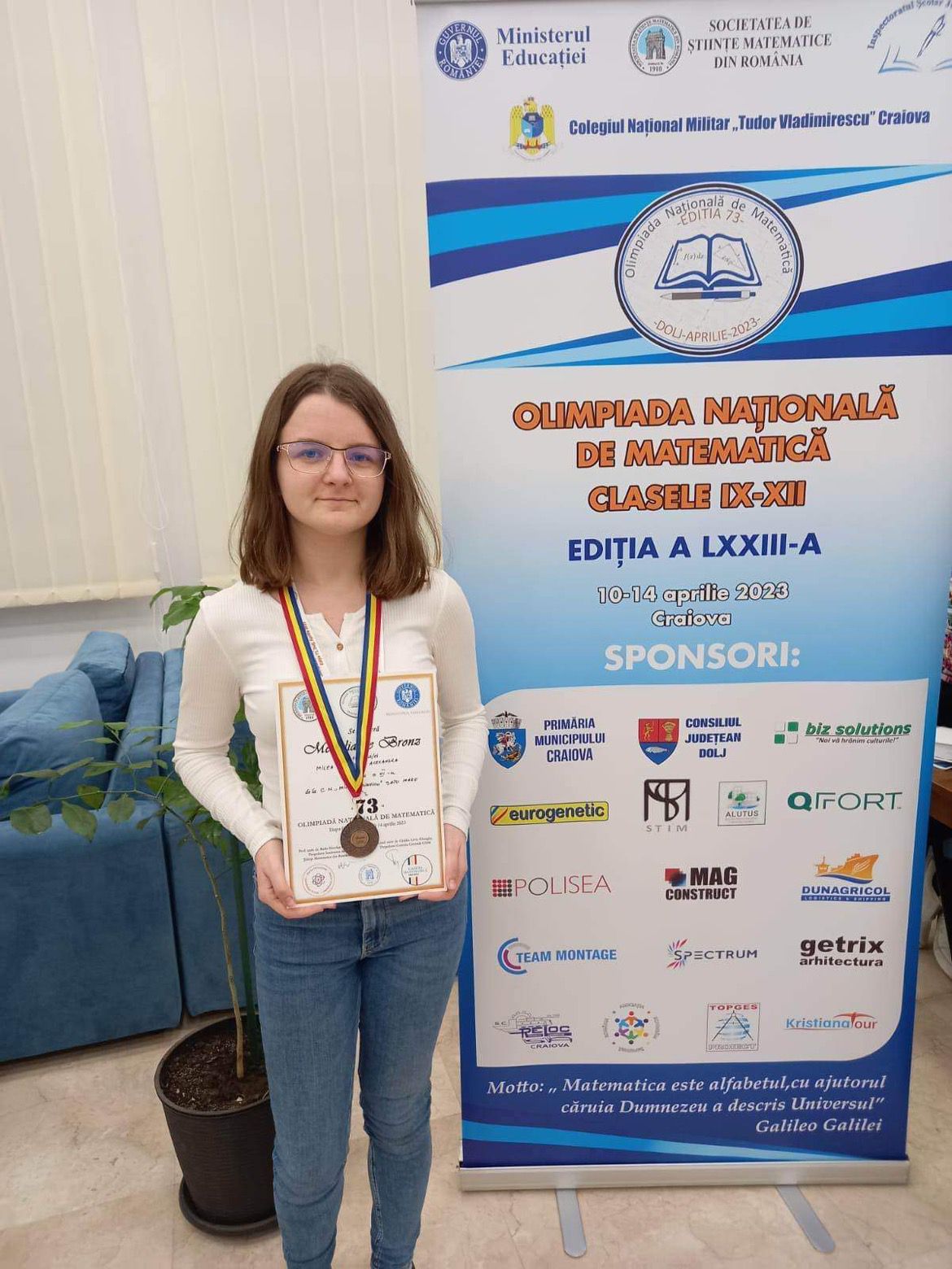 Ioana Milea, una dintre șefele de promoție, 2023, ale Colegiului Național „Mihai Eminescu” Satu Mare, din clasa a XII-a A, ilustrează exact ceea ce presupune recunoașterea performanței școlare. Coform cadrelor didactice, tânăra nu este doar eleva cu 10 pe linie, este adolescenta care a avut curajul să își pună ștachete înalte, să caute provocări în domenii care depășesc cu mult programele școlare, să își prefigureze viitoarea carieră construind, cu fiecare performanță, un fundament temeinic.