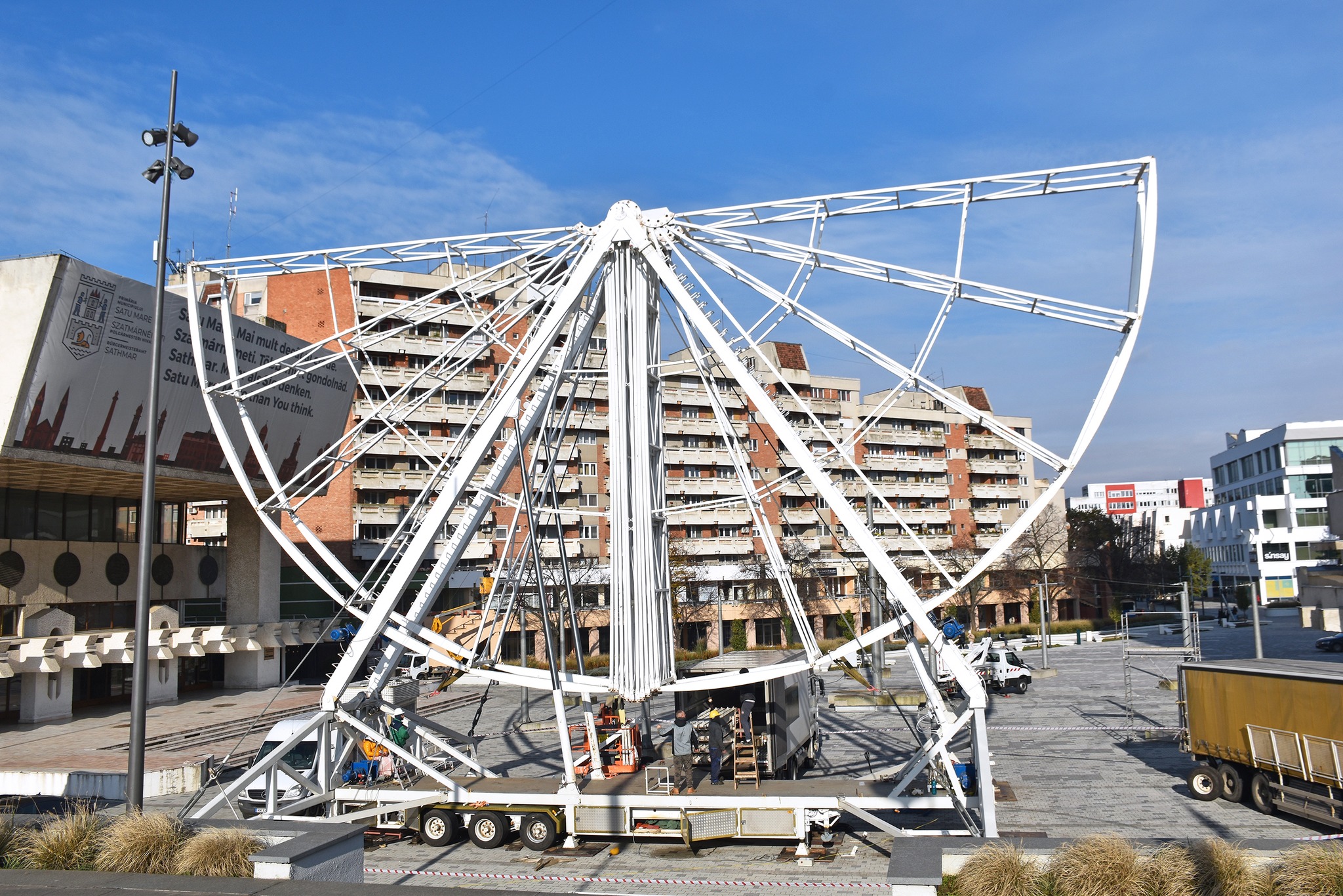 Sătmărenii vor avea parte, în premieră, de o roată panoramică, asemănătoare cu cea din Londra. Aceasta vi montată în Centrul Nou și va fi funcțională din data de 30 noiembrie când va fi aprins și iluminatul festiv în oraș.