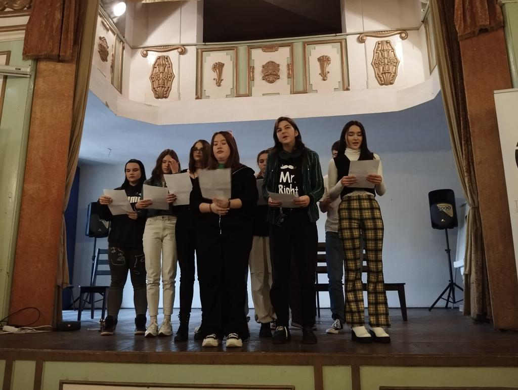 Proiectul „Teatru SMArt”, implementat de Teatrul de Nord Satu Mare și cofinanțat de Administrația Fondului Cultural Național, a ajuns ieri, 10 noiembrie 2023, și în Colegiul Național „Mihai Eminescu” Satu Mare. Pe parcursul a șapte luni, peste 40 de adolescenți talentați, de la colegiile sătmărene, s-au întâlnit cu dramaturgul Natalia Graur și cu actorii Ioana Cheregi și Andrei Stan. Rezultatul întâlnirilor acestora îl reprezintă două piese inedite „Fără titlu încă” și „Micul testament”, al căror text a fost inspirat din ideile elevilor participanți la proiect și jucate de către aceștia.