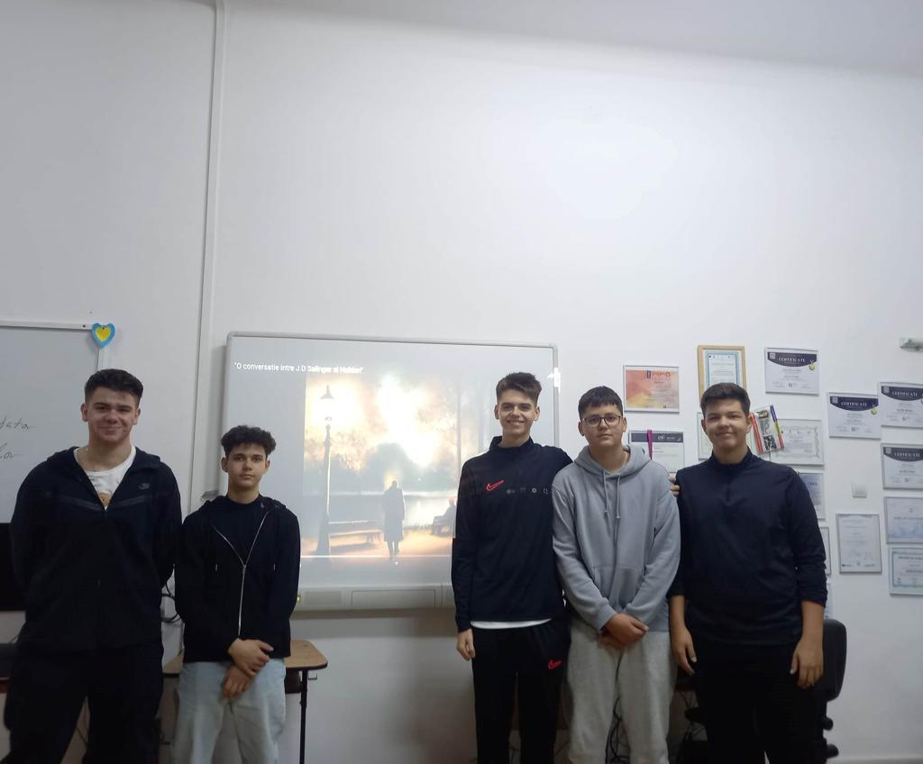 Pe baza unui scenariu, creat în echipă, s-a generat un dialog între ,,ființa de hârtie” (R. Barthes), Holden, protagonistul romanului ,,De veghe în lanul de secară”, și autorul romanului, J.D. Salinger. Echipa de proiect a creat un video, integrând, în mod responsabil, uneltele AI. Produsul face parte din proiectul literar transdisciplinar ,,Adolescența – între zbor sau cădere” și a fost prezentat în cadrul vizitei comisiei de evaluare ARACIP, din 16 Nov. 2023.