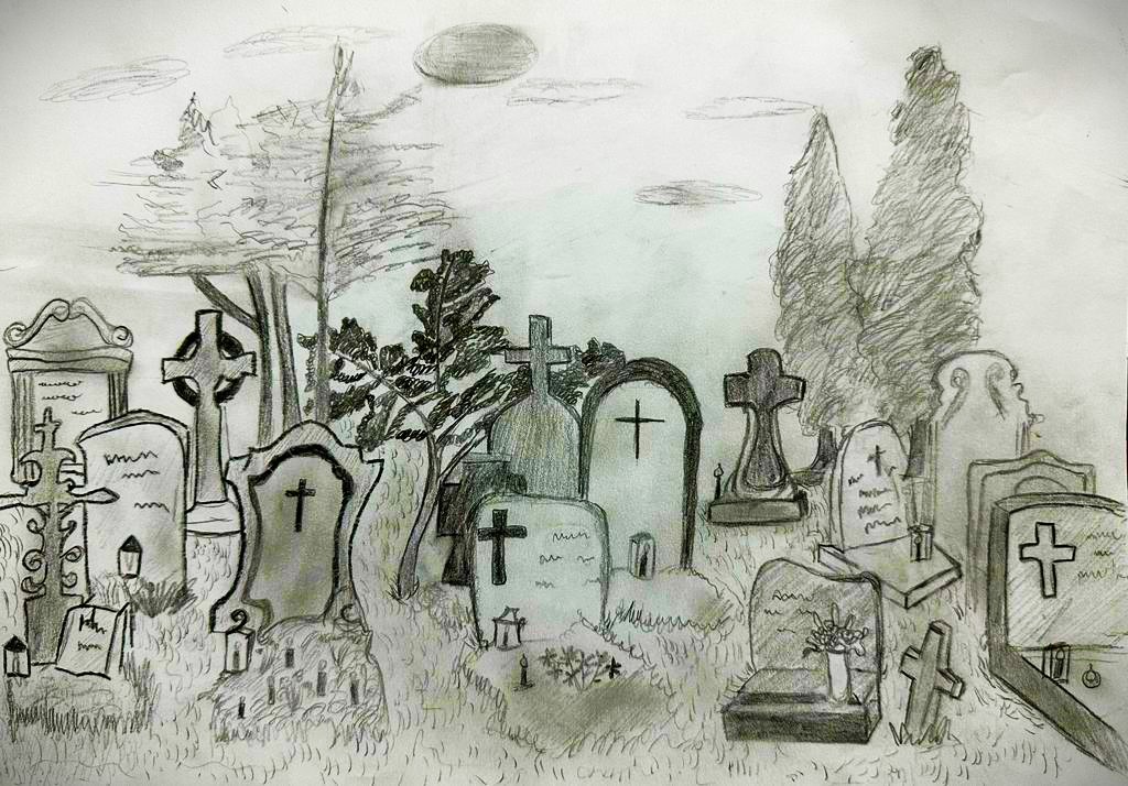 (,,Odihnă în așteptarea Învierii,,- grafică, Chira Alexandra, clasa a VII - a A, Școala Gimnazială Halmeu, profesor coordonator: Maria Chira)