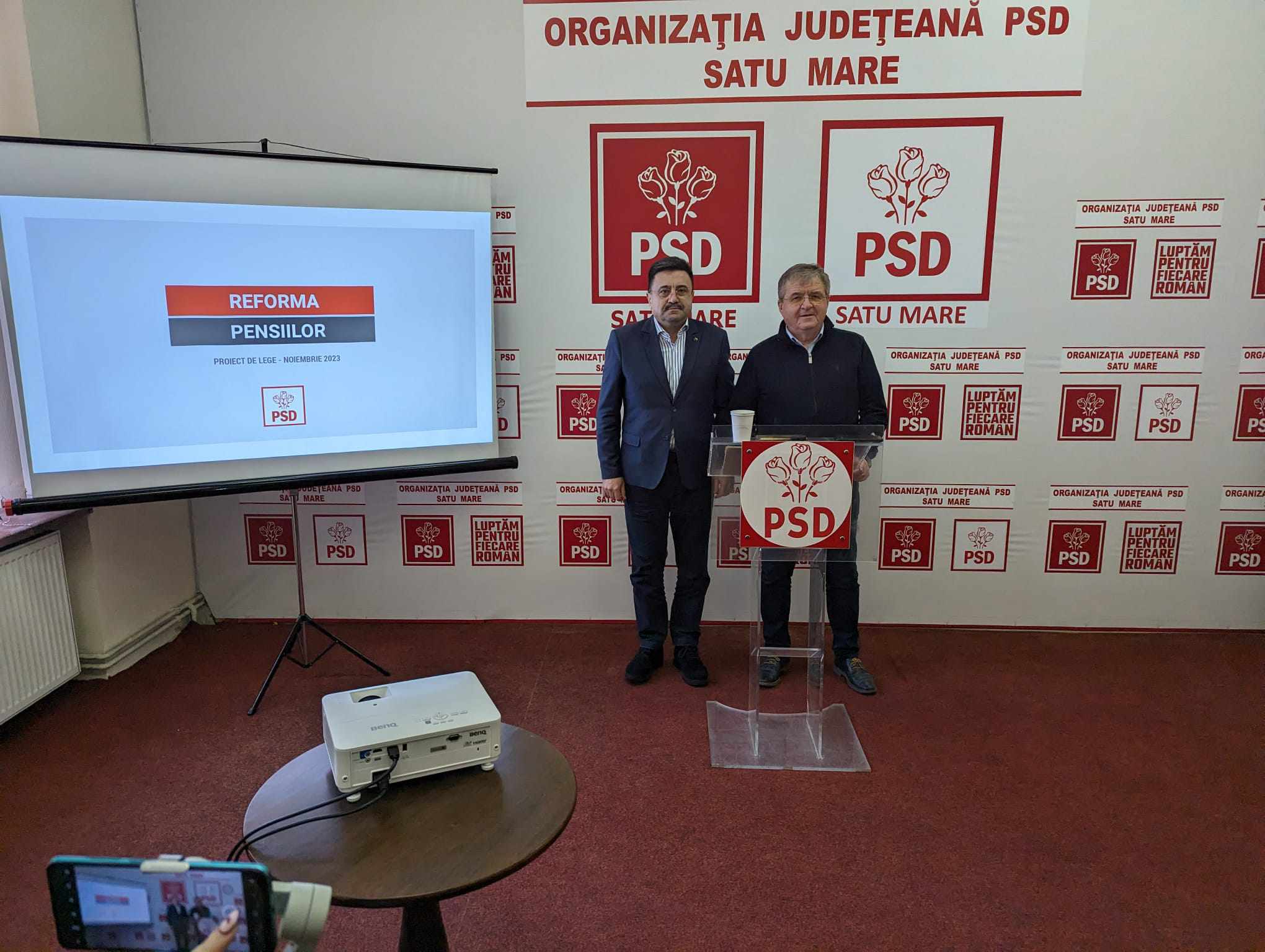 În continuarea conferinței de presă, prefectul județului Satu Mare, Radu Roca, care este și președintele Organizației Municipale a PSD Satu Mare, a prezentat pe larg noua lege a pensiilor care aduce, cu sine două majorări de pensii în cursul anului 2023.