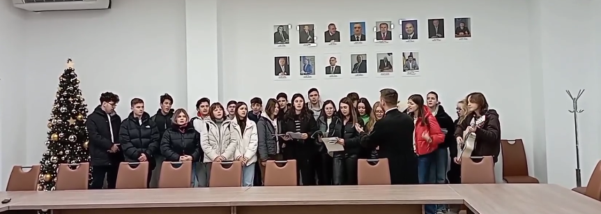 Funcționarii din cadrul Prefecturii Satu Mare, în frunte cu prefectul Radu Roca, mulțumesc elevilor Colegiului National Mihai Eminescu Satu Mare coordonați de prof.Radu Pop, pentru momentul deosebit pe care ni l-au oferit azi la Instituţia Prefectului Satu Mare .