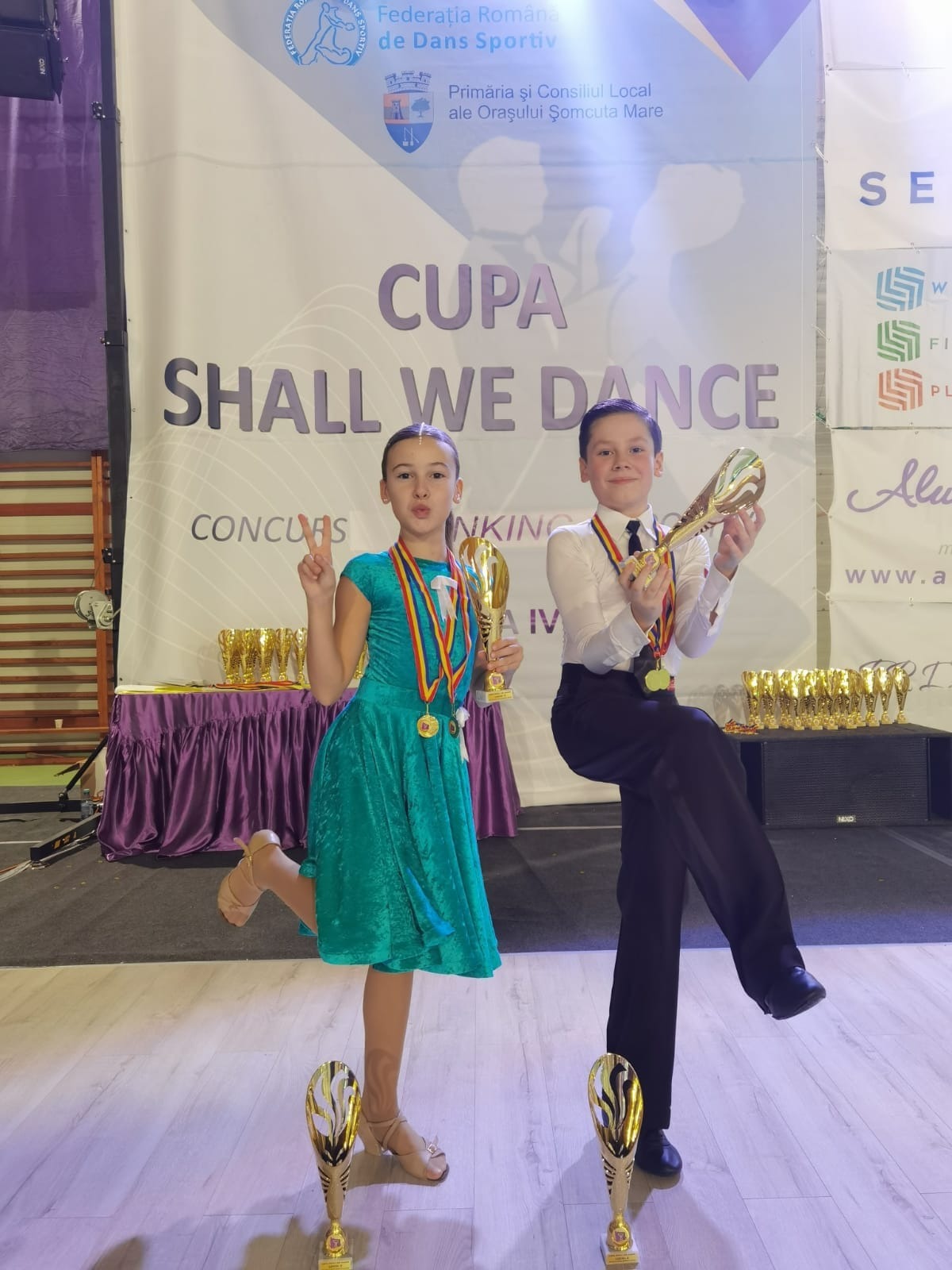Perechea Radu Kocsis și Crina Dobra au obținut locul 6 la Clasa D Standard 16-34 de ani, locul 2 la Open Latino Seniori, respectiv locul 2 la Open St Seniori.