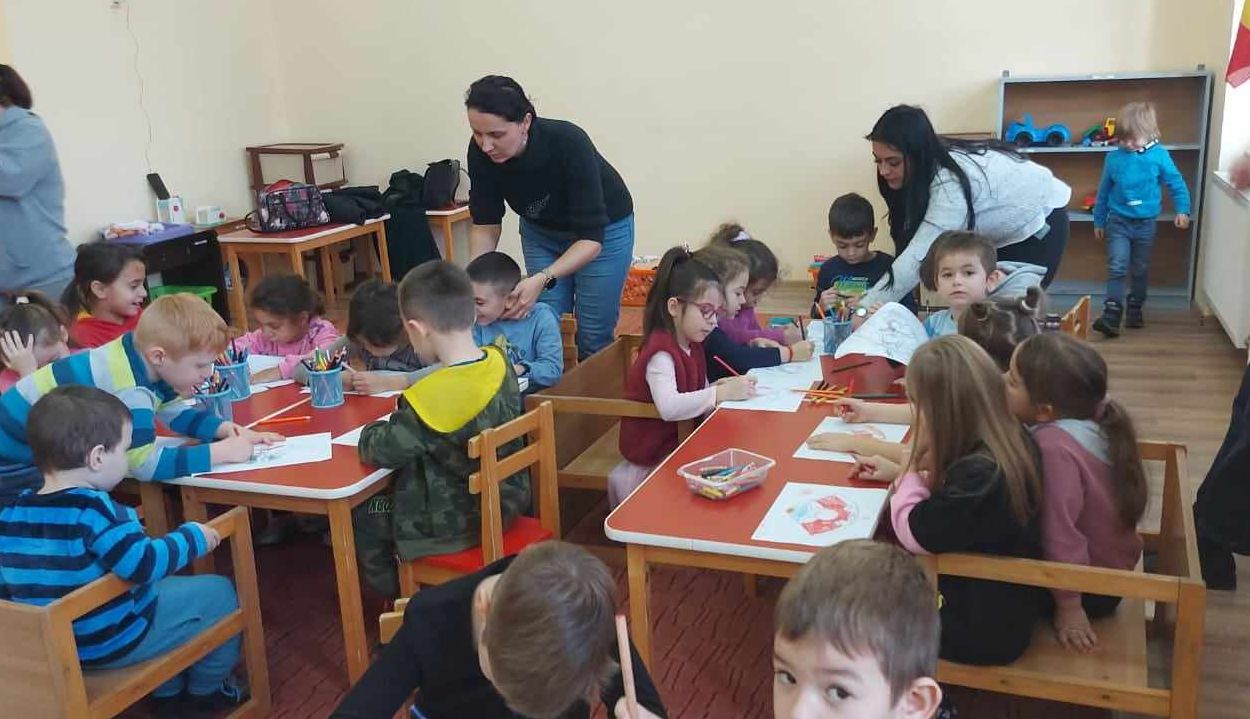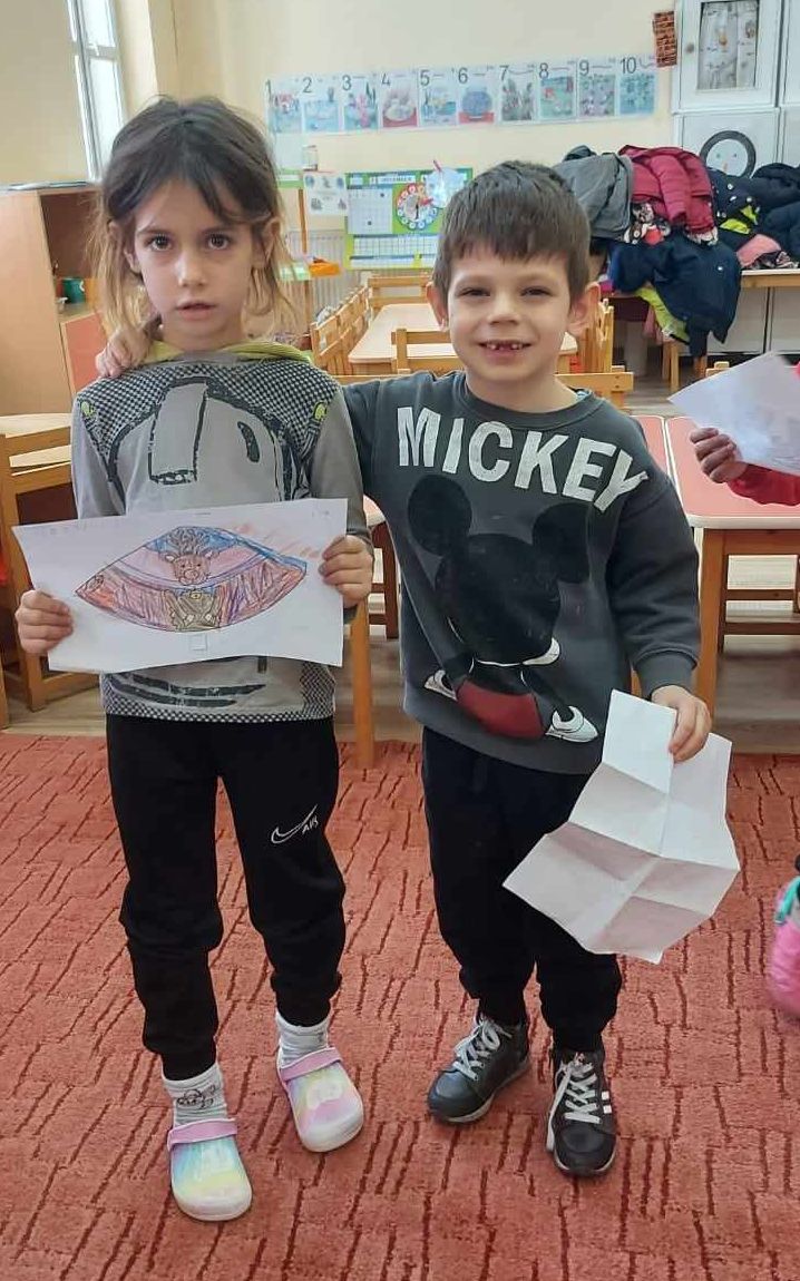 După poveste fiecare copil a desenat o surpriză pentru un prieten,astfel copiii și-au ales prieteni,au făcut schimb de desene,au argumentat ce le place la prietenul lor și s-au jucat împreună ,petrecând timp de calitate.La plecare preșcolarii grupei mari ”D” au primit portocale de la preșcolarii grupei combinate,limba maghiară.