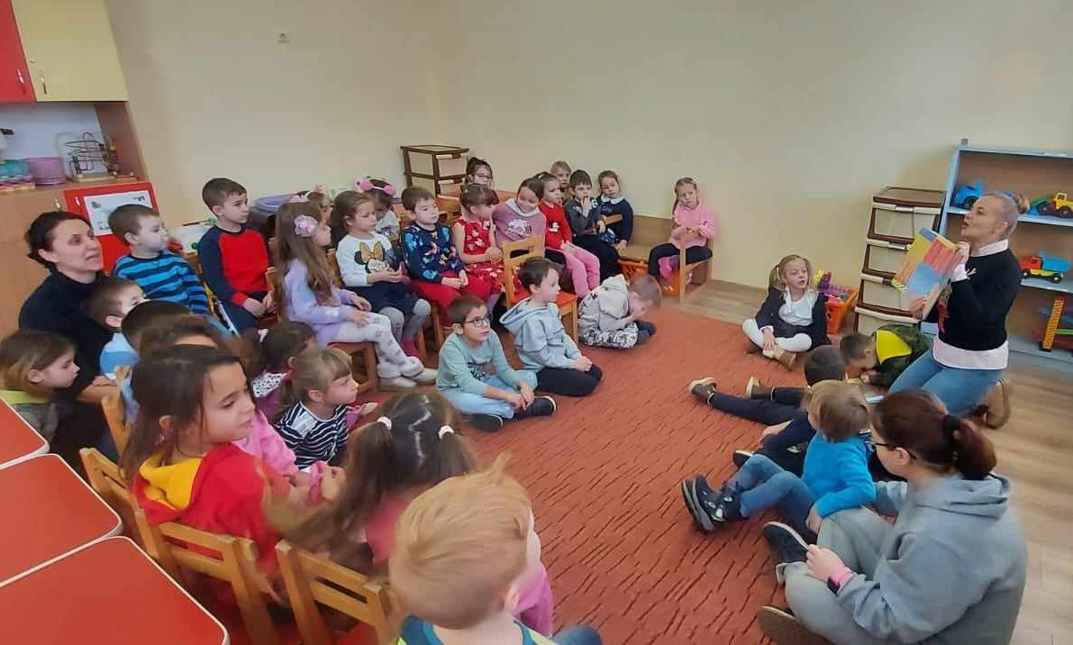 Fiecare copil s-a prezentat și a spus câteva cuvinte despre el. După rostirea formulei magice , în limba romănă și maghiară ,am intrat în atmosfera de poveste. Povestea citită a fost primită în dar de la Lupșica Ilaria ,acuma școlăriță, care a revenit să petreacă timp de calitate în fosta ei sală de grupă ,alături de foștii colegi.