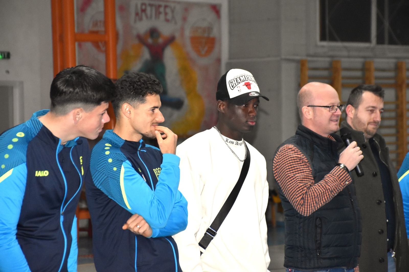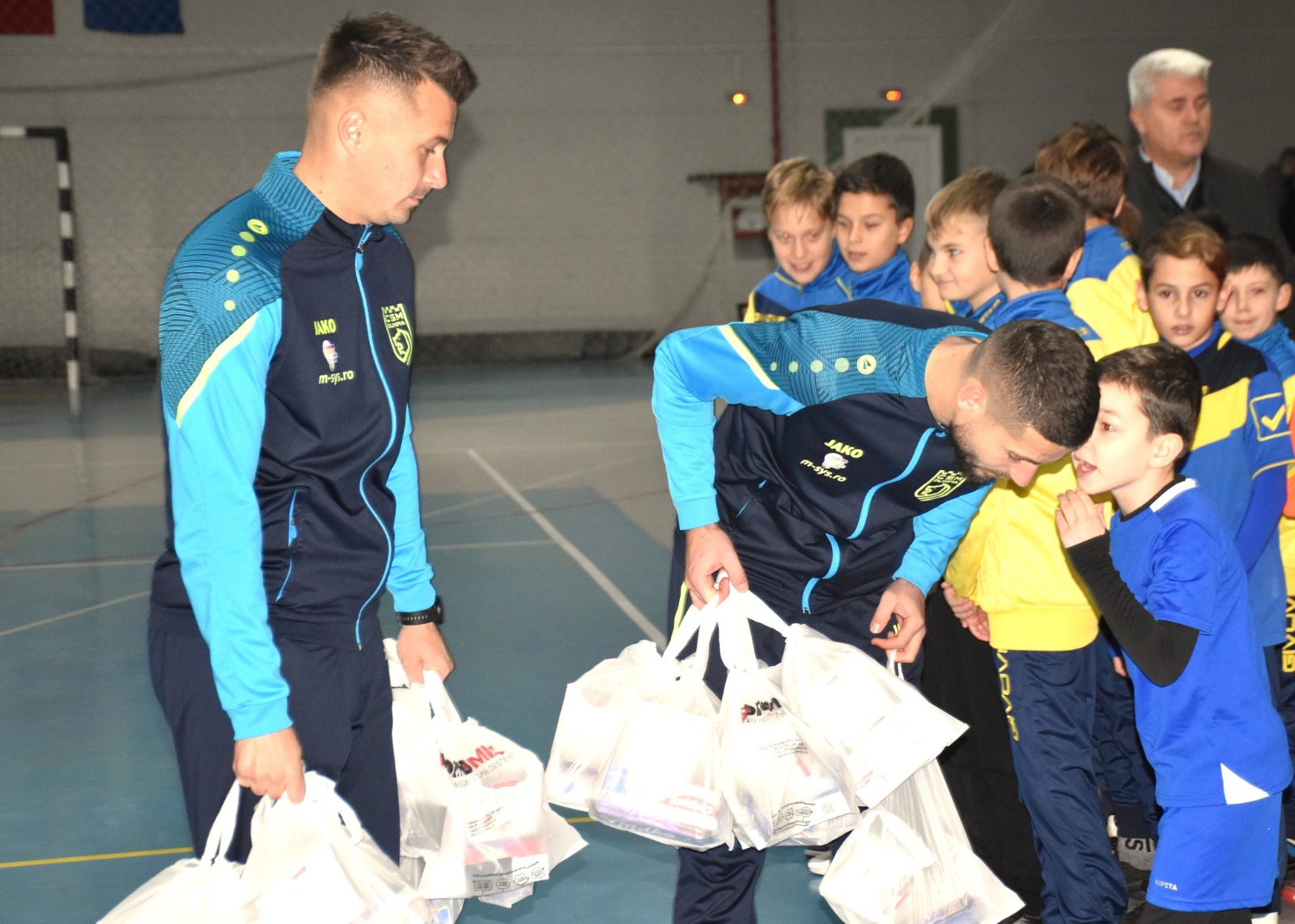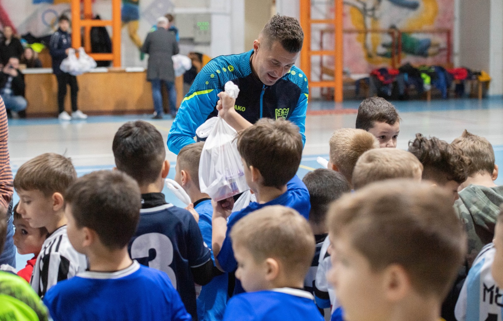 Alături de Moș Nicolae au fost și o parte dintre jucătorii echipei de seniori a CSM Olimpia , echipă ce a terminat anul pe ăpziția a doua a ligii a 3-a.