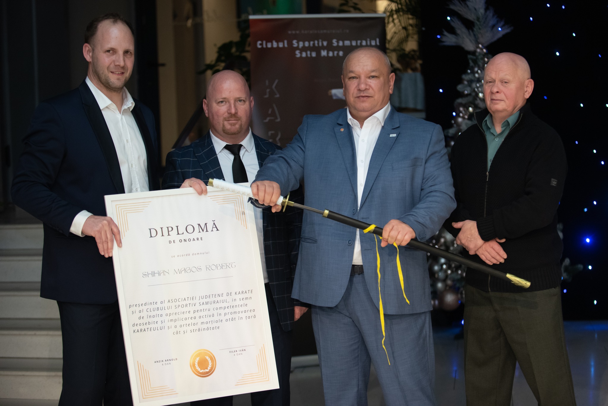 O surpriză deosebită a avut loc la finalul evenimentului unde antrenorii Sensei Anzik Arnold și Sensei Filer Ivan i-au înmânat o diplomă de merit și o sabie de samurai președintelui AJK Magos Robert în semn de recunoștință din partea celor doi pentru amintirile frumoase din trecut când erau elevi ai CS Samuraiul.